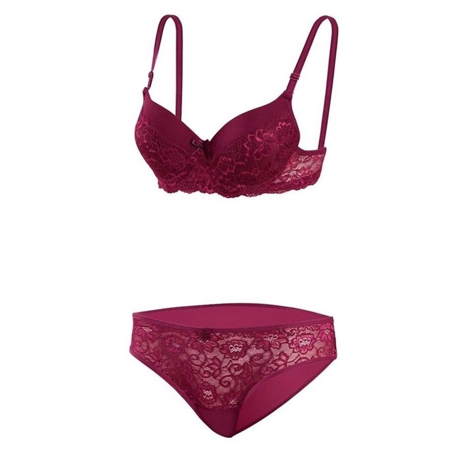 8059 Slikonlu Dolu Yarı Dantel Takım Sütyen(Destekli) - Mürdüm - 75-80-85-90-95