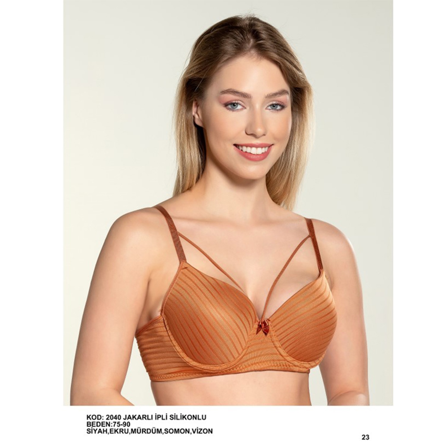 Billiza 2040 Bayan Çapraz Askılı Desteksiz Jakarlı Sütyen 80-95 - Kiremit