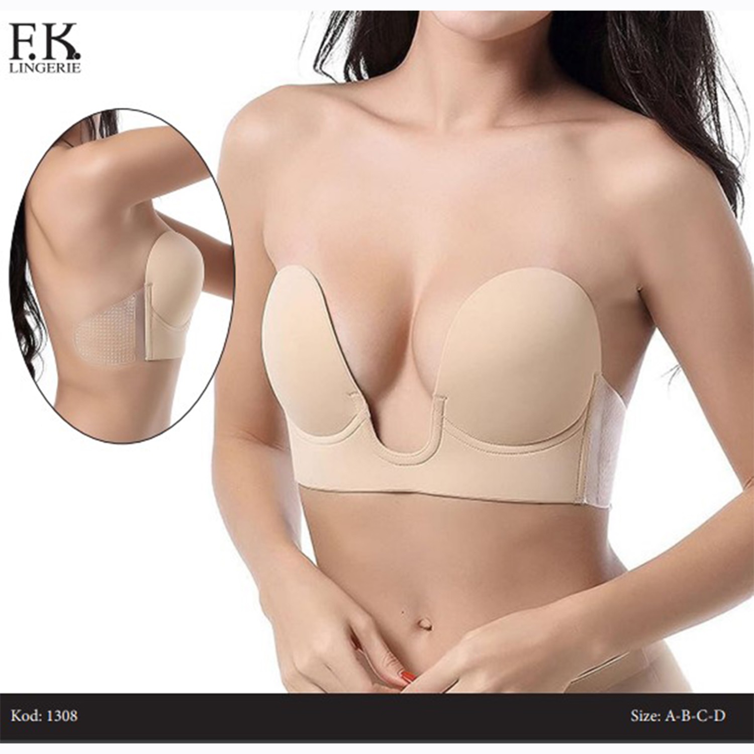 F.K 1308 Bayan Desteksiz Balenli Mikrofiber Askısız Straplez Hayalet Silikonlu Sütyen