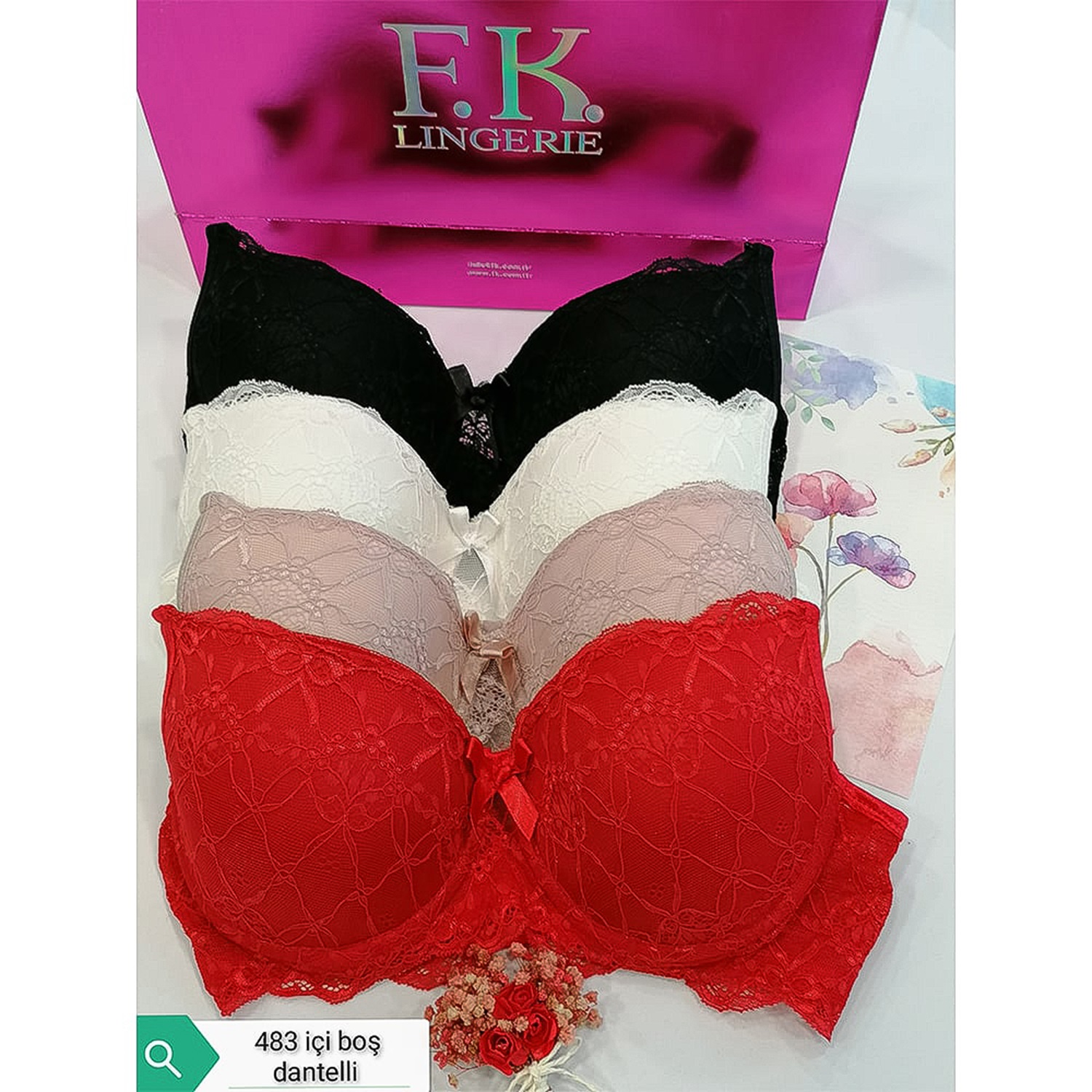 F.K 483 Bayan Dantelli Dolgusuz Telli Sütyen Cup B 80-95