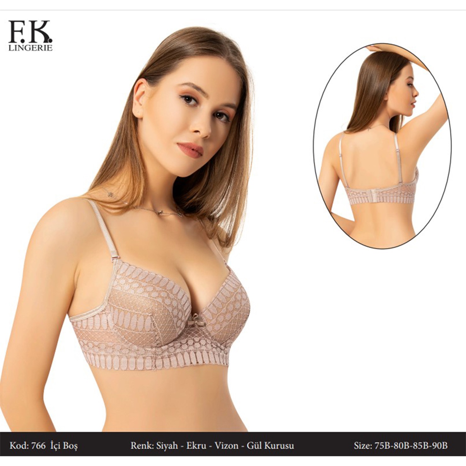 F.K 766 Bayan Dantelli Desteksiz Balenli Sütyen 80-95