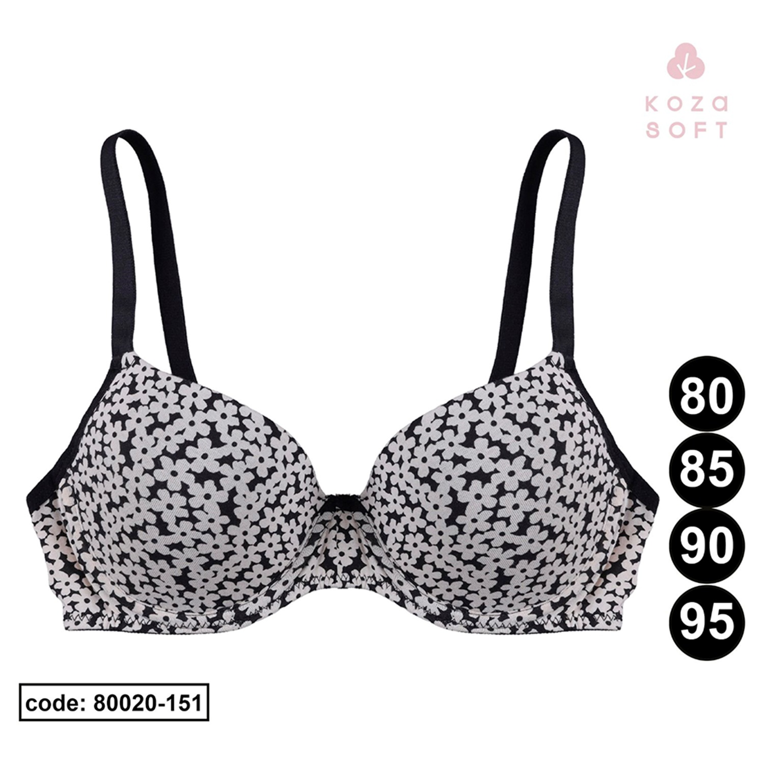 Koza Soft 80020-151 Bayan Desenli Empirme Desteksiz Sütyen 80-95