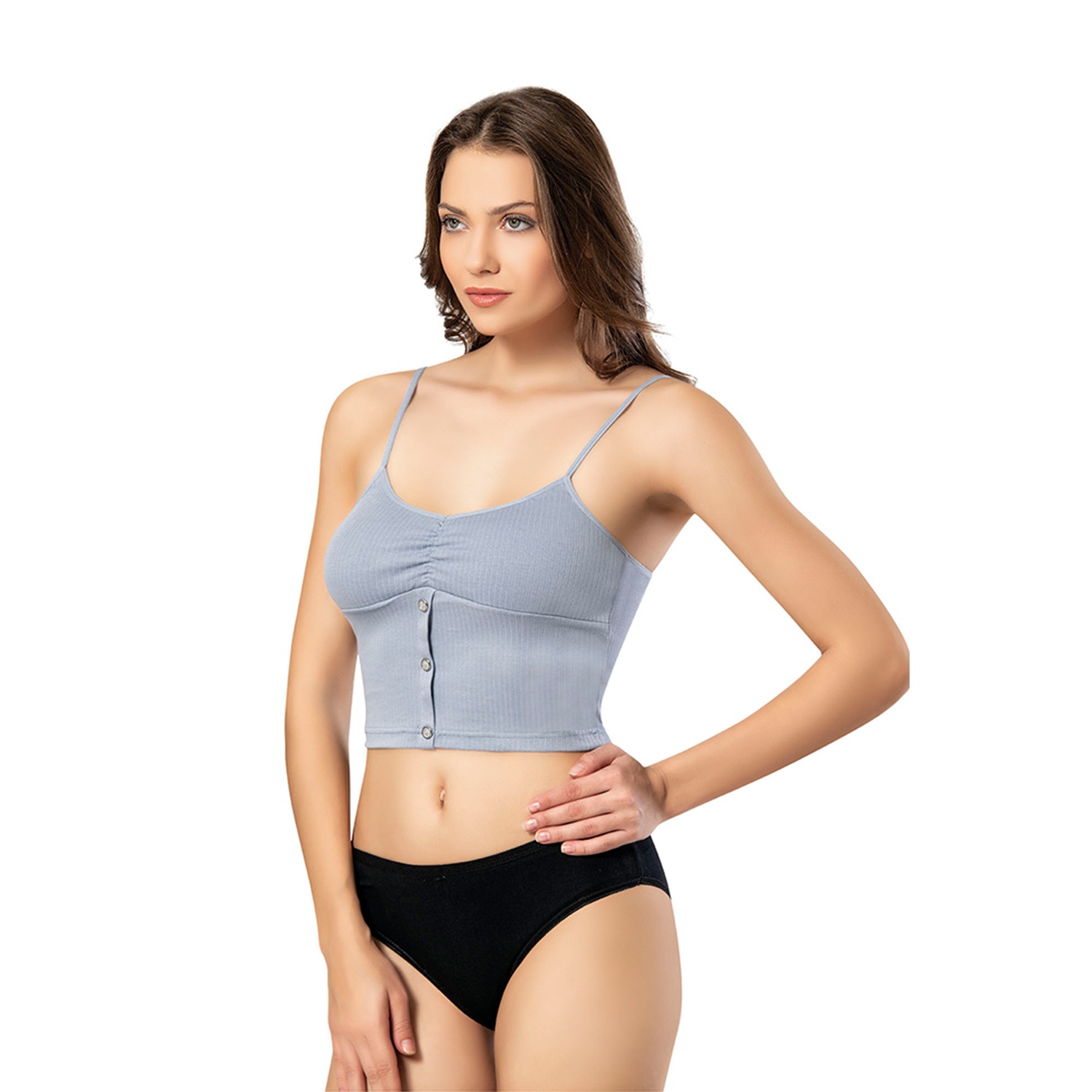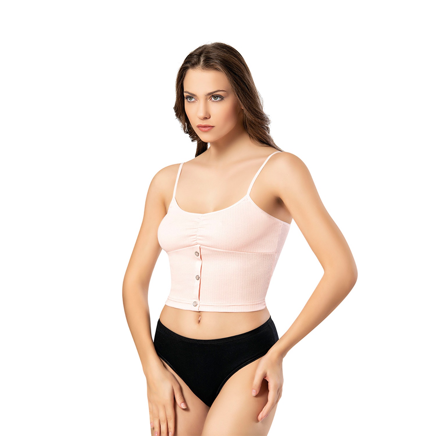 Kota 6441 Bayan Raporlu İp Askılı Modelli Pedli Krop - Somon
