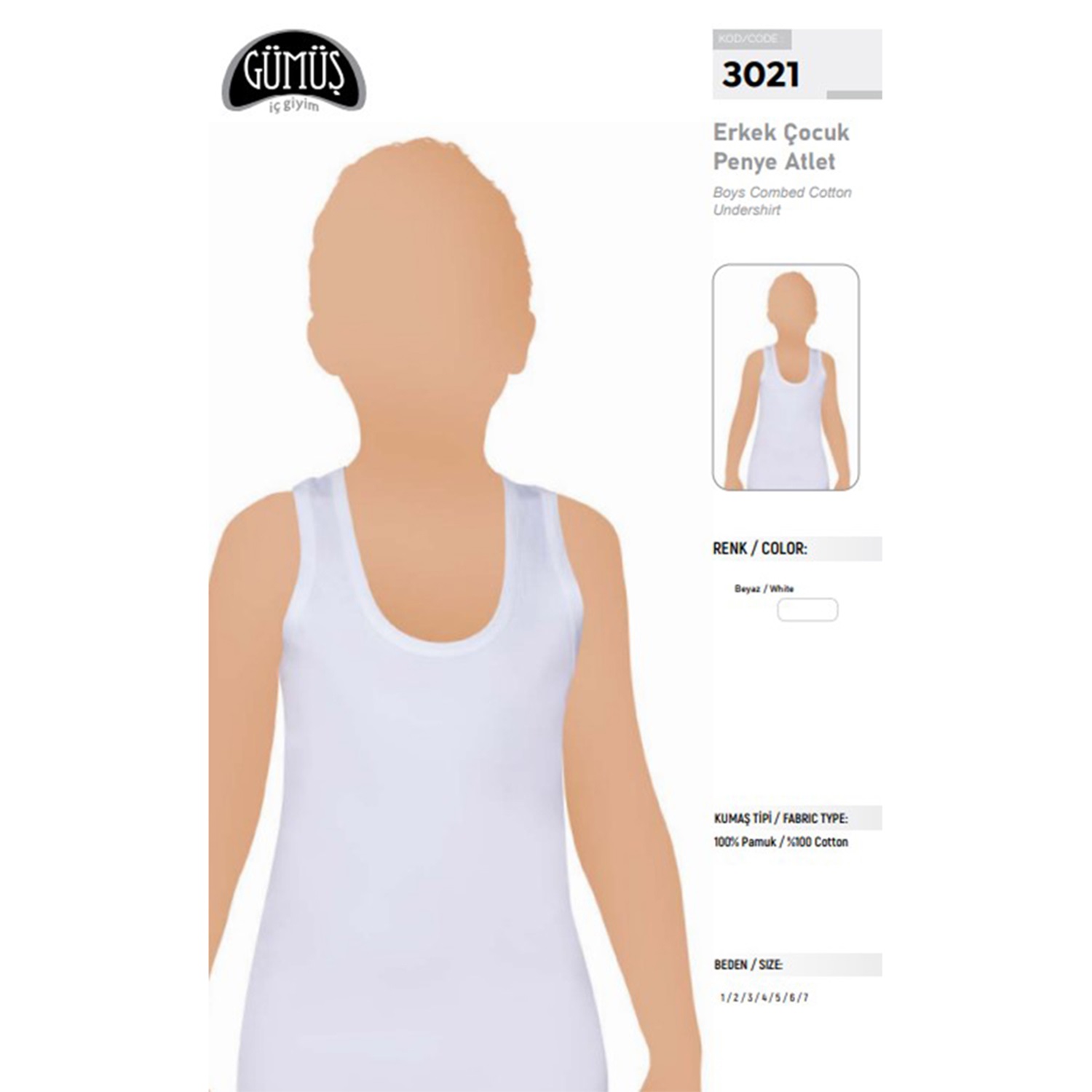 Gümüş 3021 Pamuk Penye Askılı Erkek Çocuk Atlet