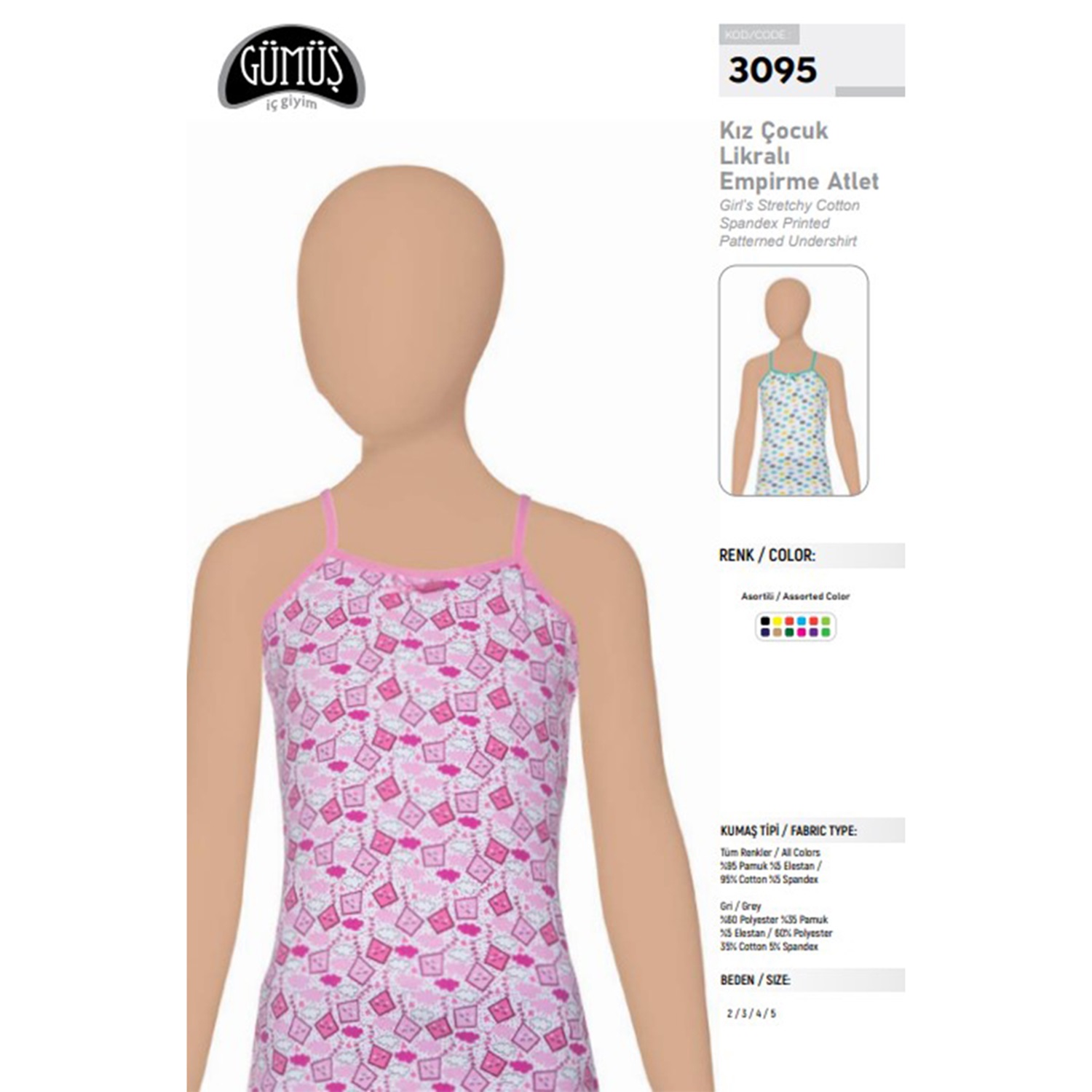 Gümüş 3095 Desenli Kız Atleti