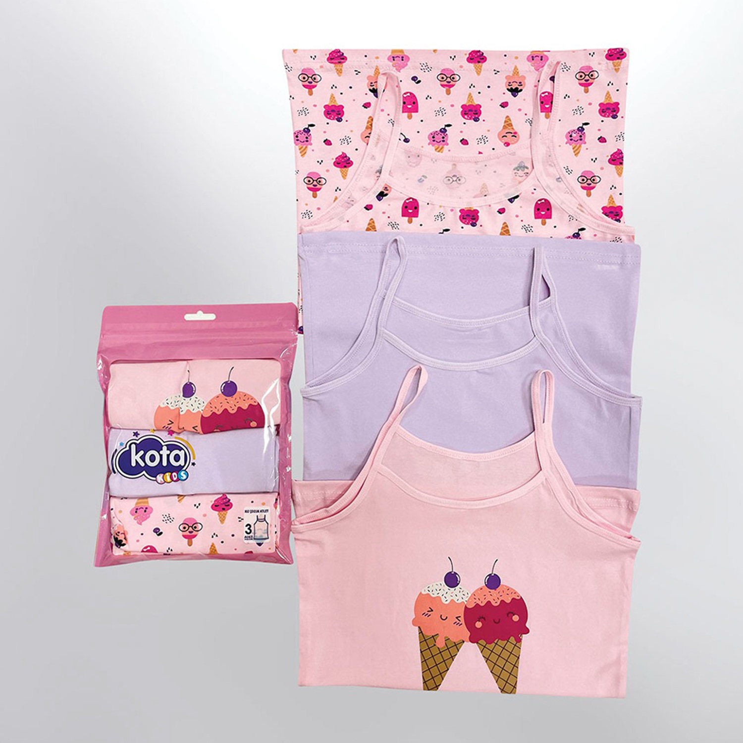 Kota Kids 3423 Kız Çocuk 3 Lü Baskılı İp Asklı Atlet - Karışık Renk