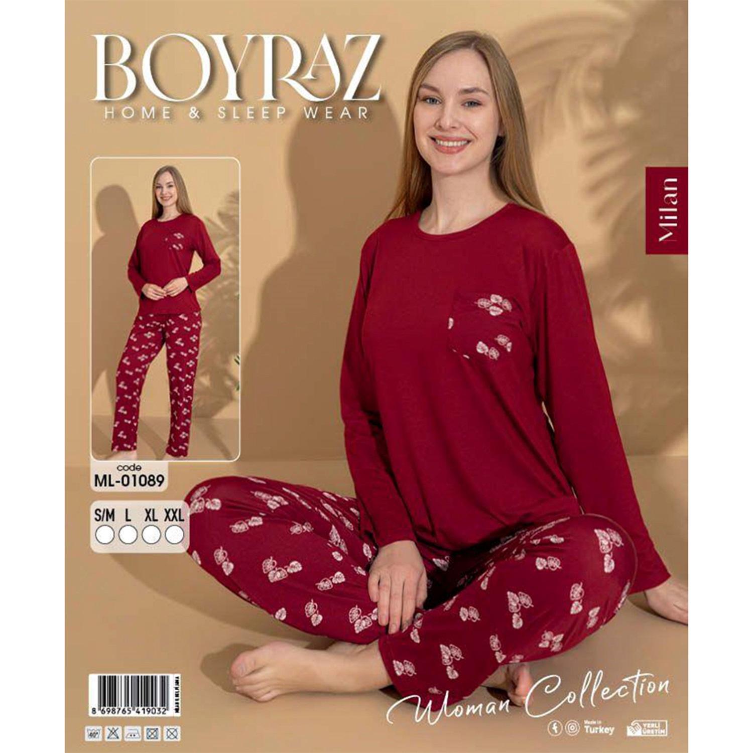 Boyraz Ml-01089 Bayan Milan Desenli Uzun Kollu Pijama Takımı S-2XL