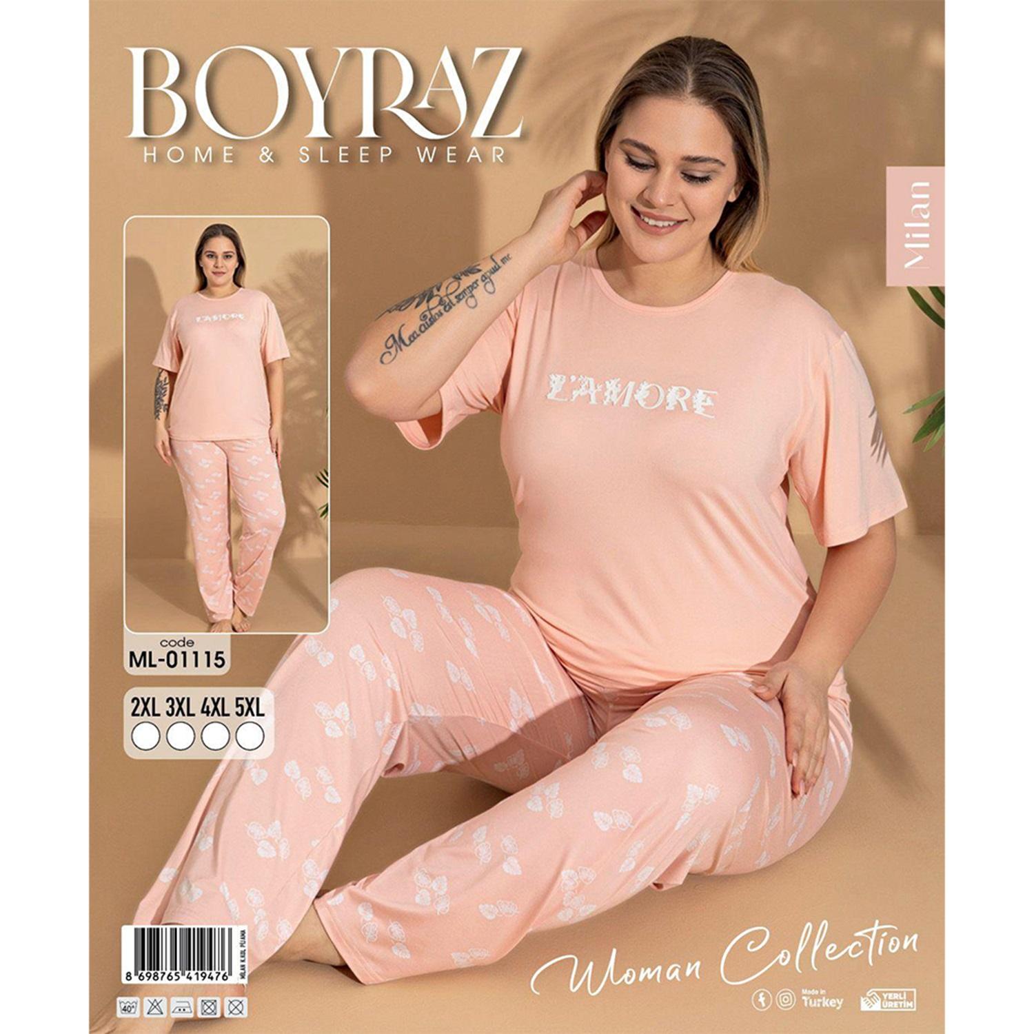 Boyraz Ml-01115 Bayan Battal Milan Desenli Kısa Kol Pijama Takımı 2XL-5XL