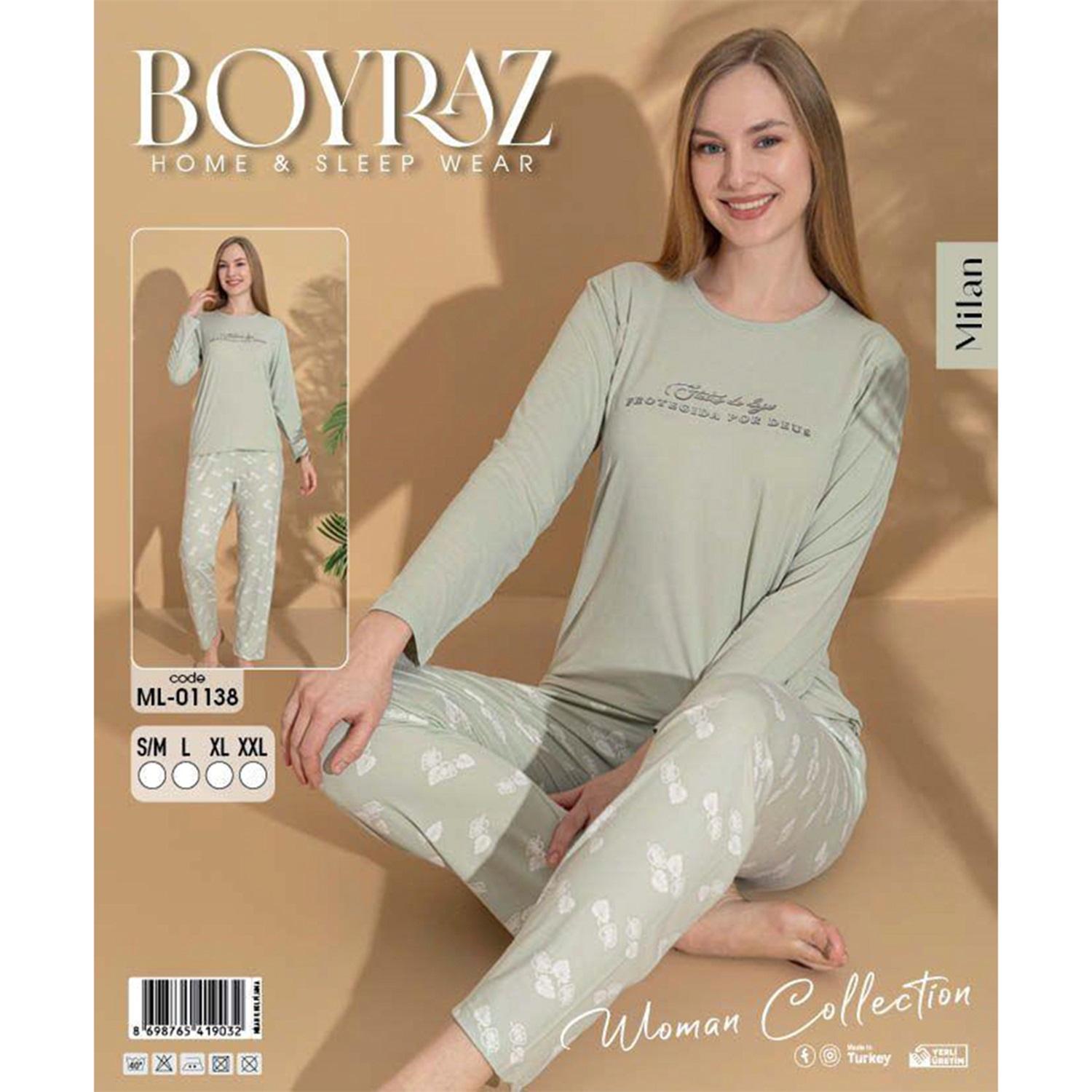 Boyraz Ml-01138 Bayan Milan Desenli Uzun Kollu Pijama Takımı S-2XL
