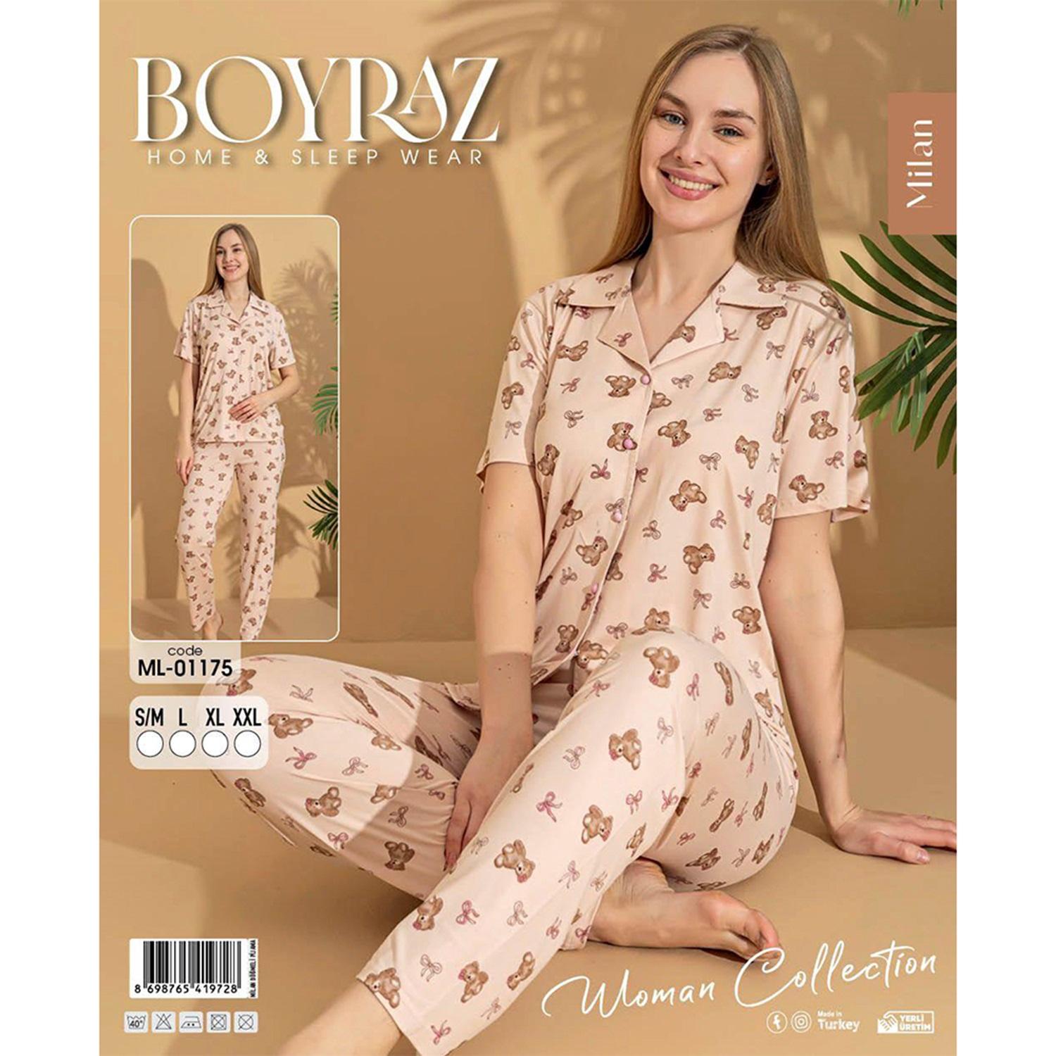 Boyraz Ml-01175 Bayan Milan Desenli Boydan Düğmeli Kısa Kol Pijama Takımı S-2XL