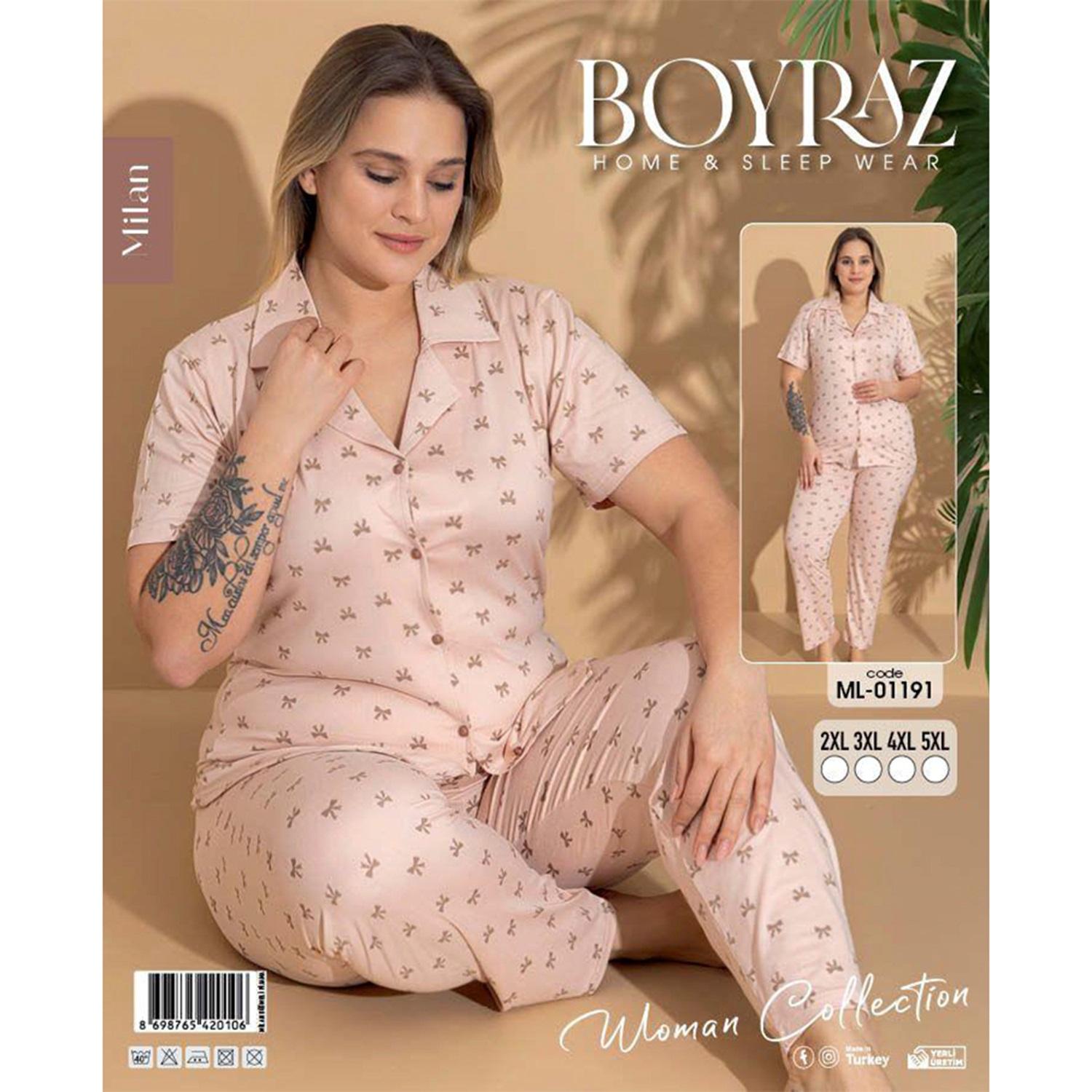 Boyraz Ml-01191 Bayan Battal Milan Desenli Boydan Düğmeli Kısa Kol Pijama Takımı 2XL-5XL