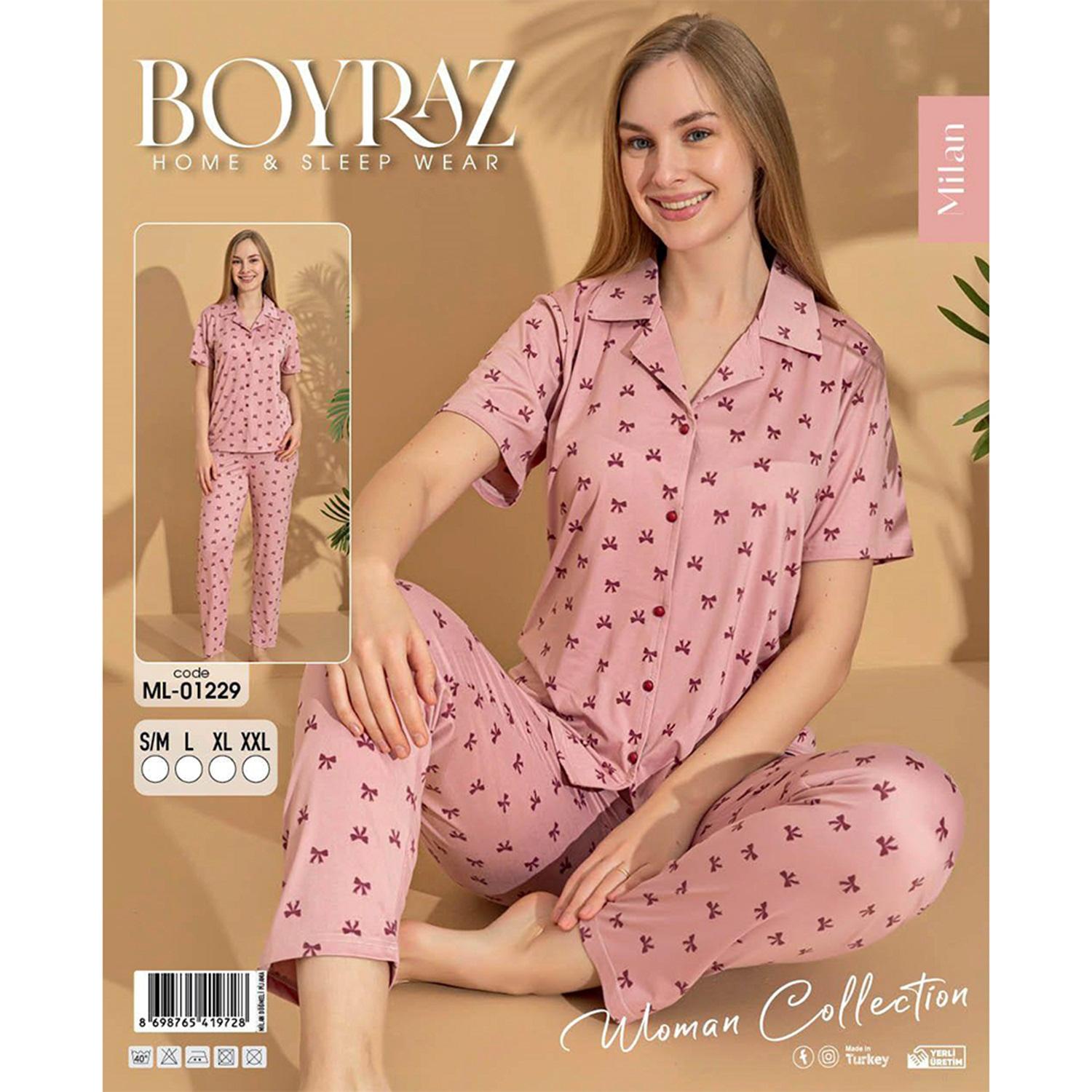 Boyraz Ml-01229 Bayan Milan Desenli Boydan Düğmeli Kısa Kol Pijama Takımı S-2XL