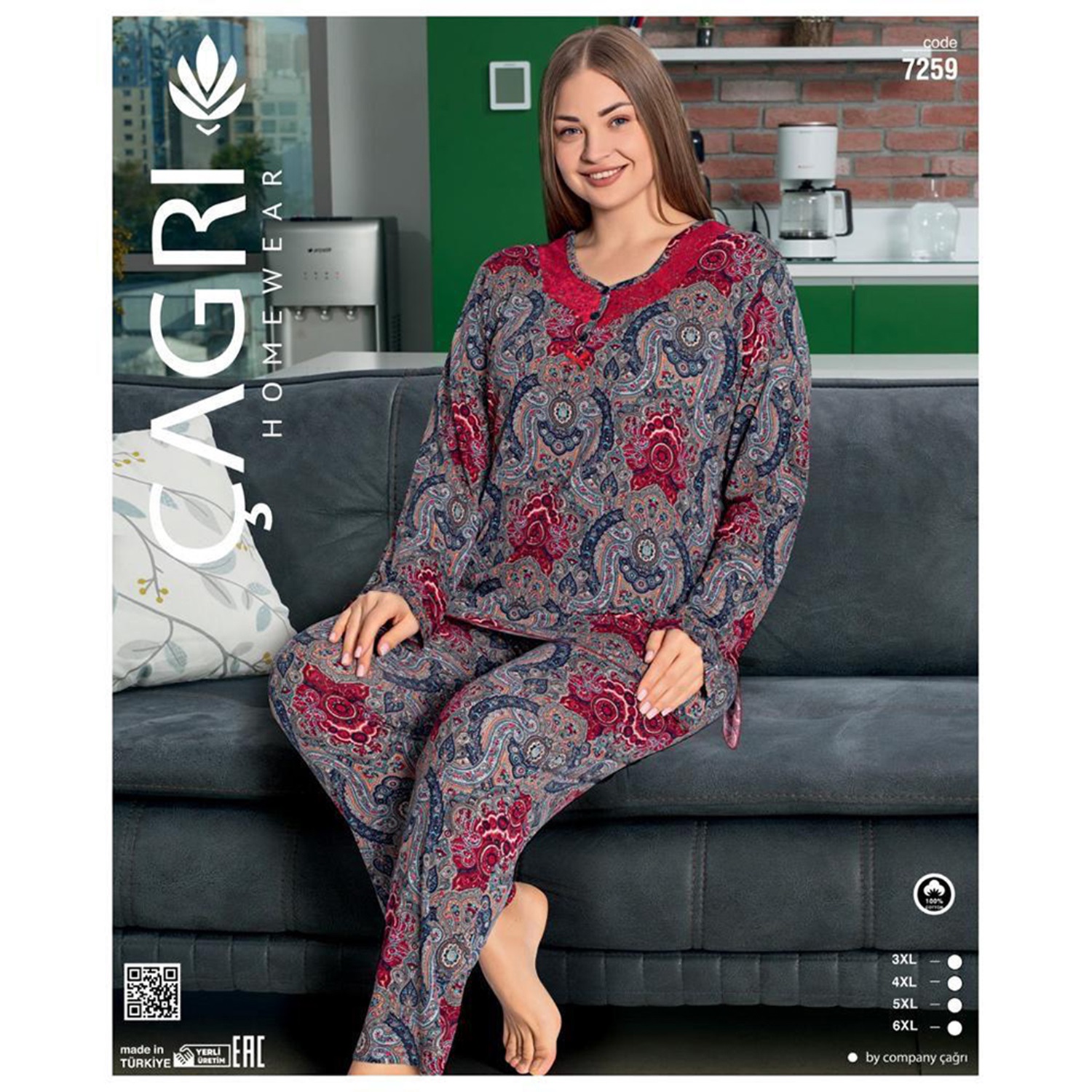 Çağrı 7259 Bayan Penye 3 Düğmeli Big Size Battal Pijama Takımı 3XL-6XL