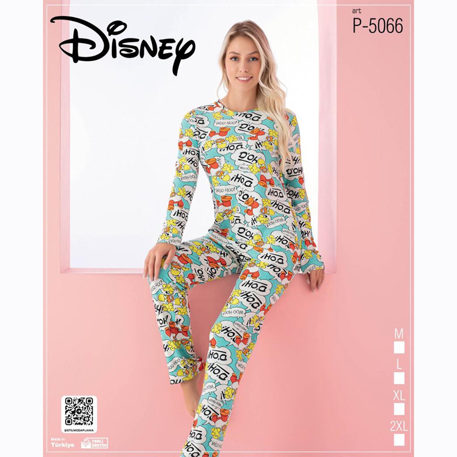 Disney P-5066 Bayan Çizgi Karakter Desenli Süet Pijama Takımı M-2XL