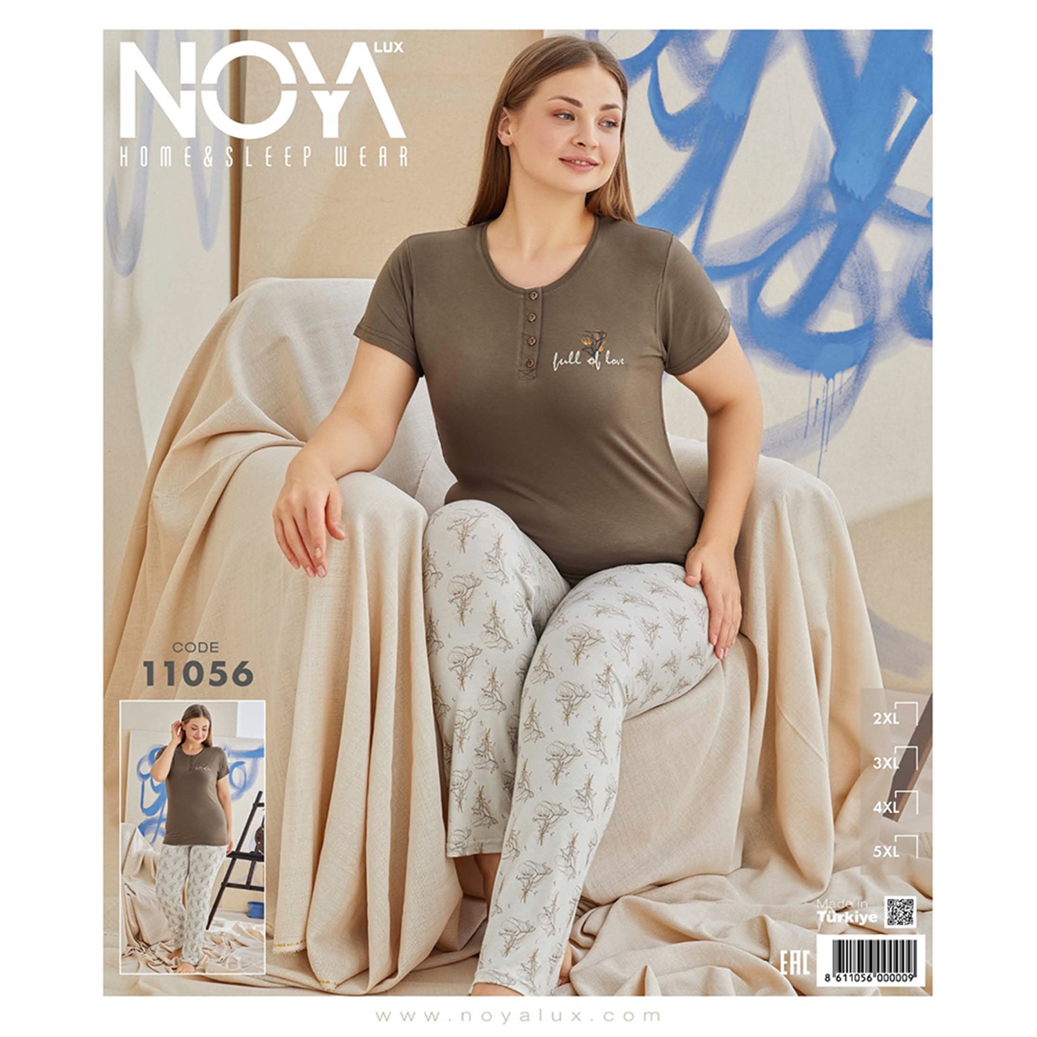 Noya Lux 11056 Bayan Ring Viskon Kısa Kol Battal Pijama Takımı 2XL-5XL