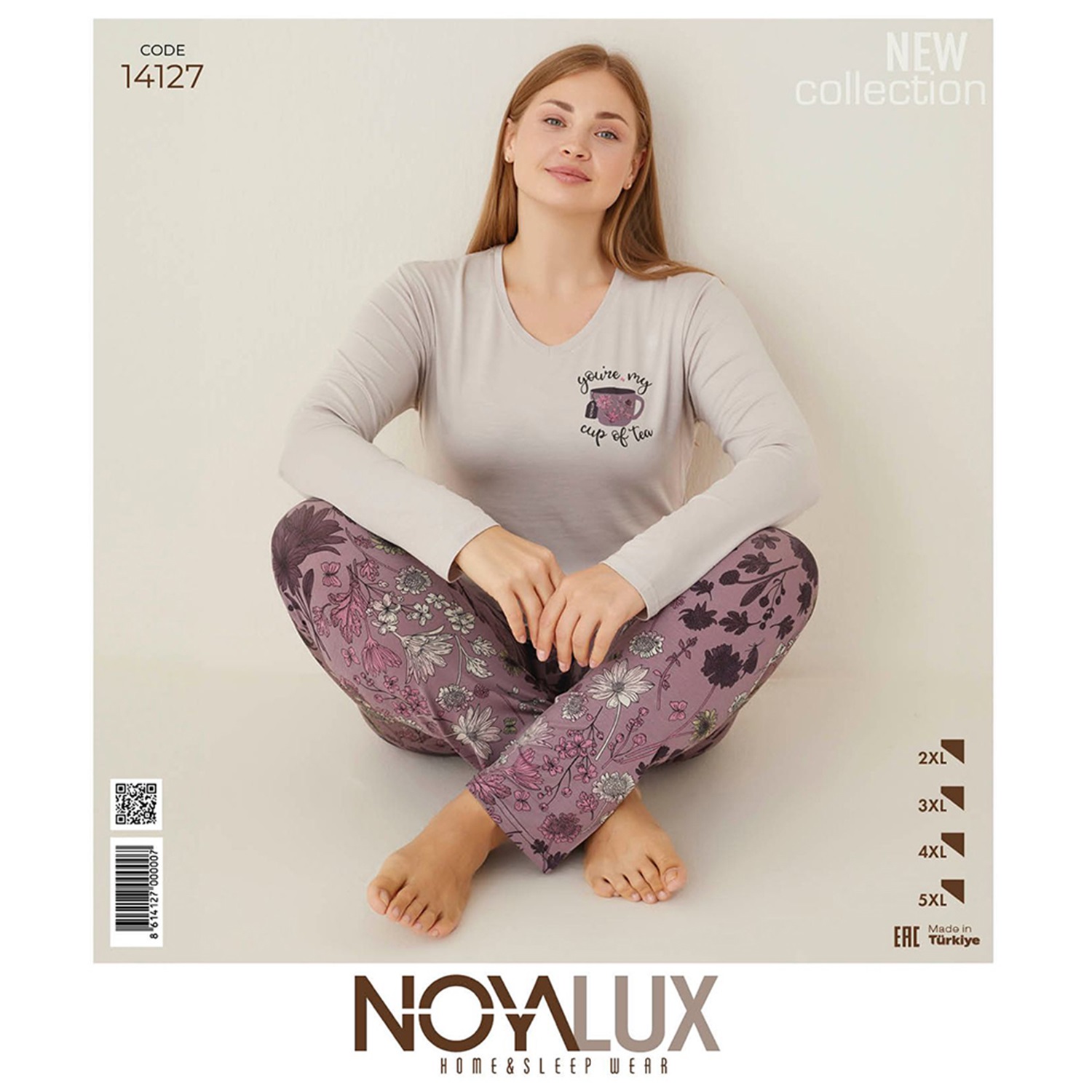Noya Lux 14127 Bayan Battal V Yakalı Patlı Uzun Kol Pijama Takımı 2XL-5XL