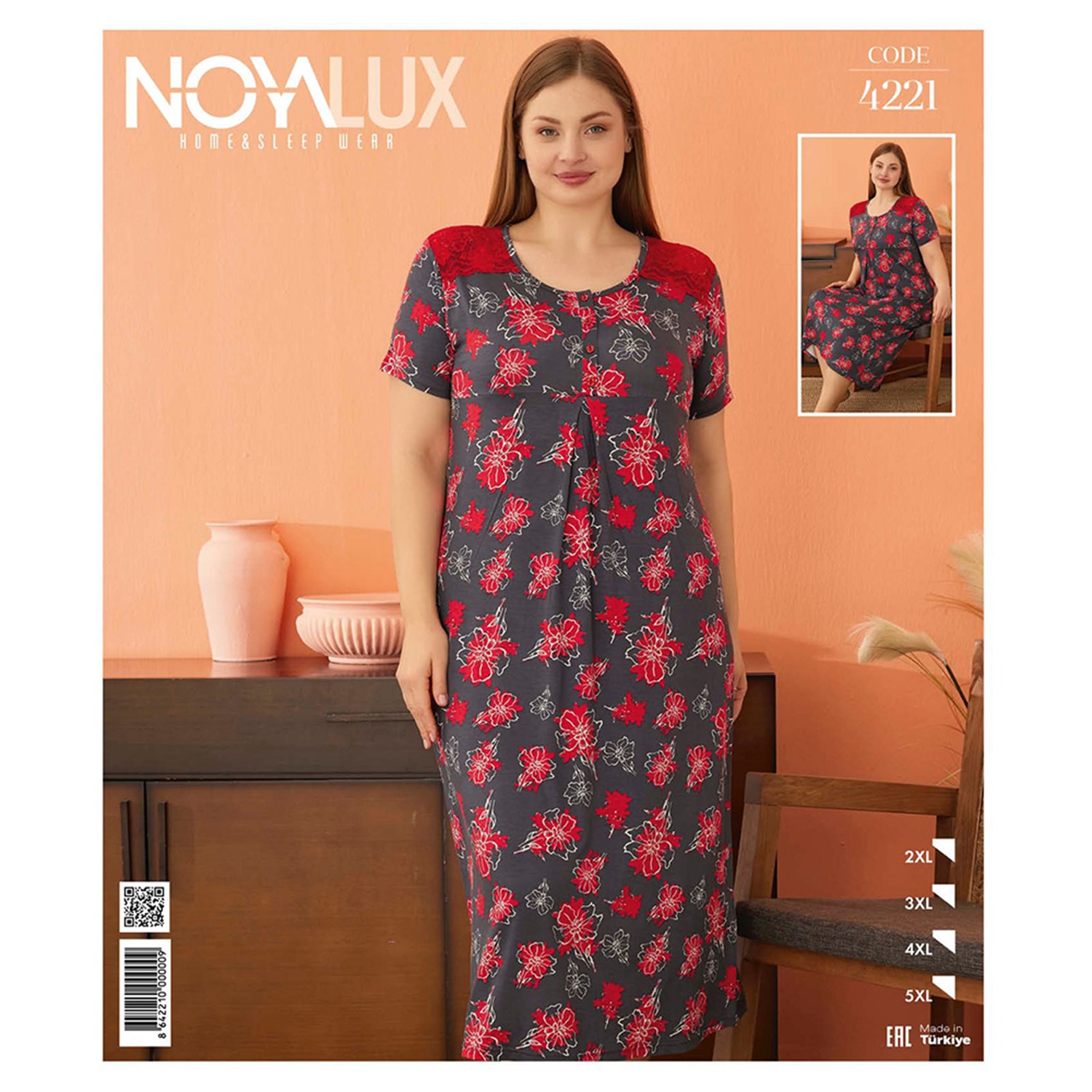 Noya Lux 4221 Bayan Battal Penye Körüklü Kısa Kol Boydan Gecelik 2XL-5XL