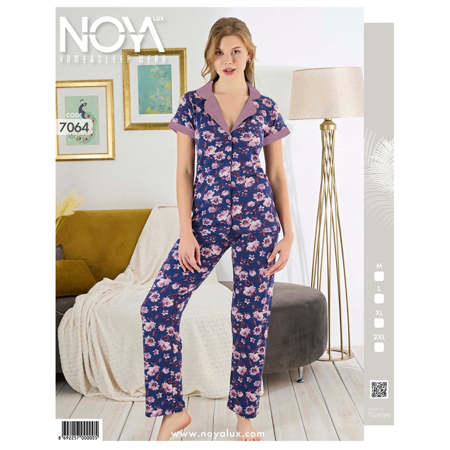 Noya Lüx 7064 Bayan Ring Viskon Önü Düğmeli Kısa Kol Pijama Takım M-2XL