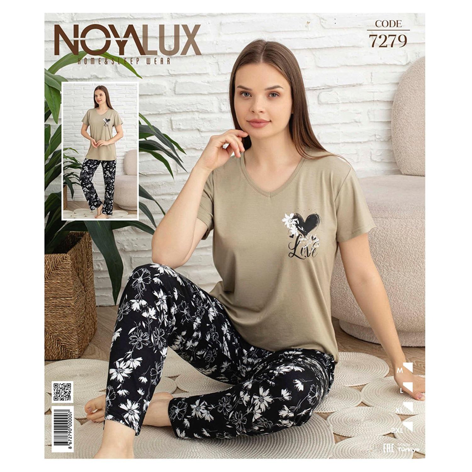 Noya Lux 7279 Bayan Penye V Yaka Kısa Kol Pijama Takımı M-2XL