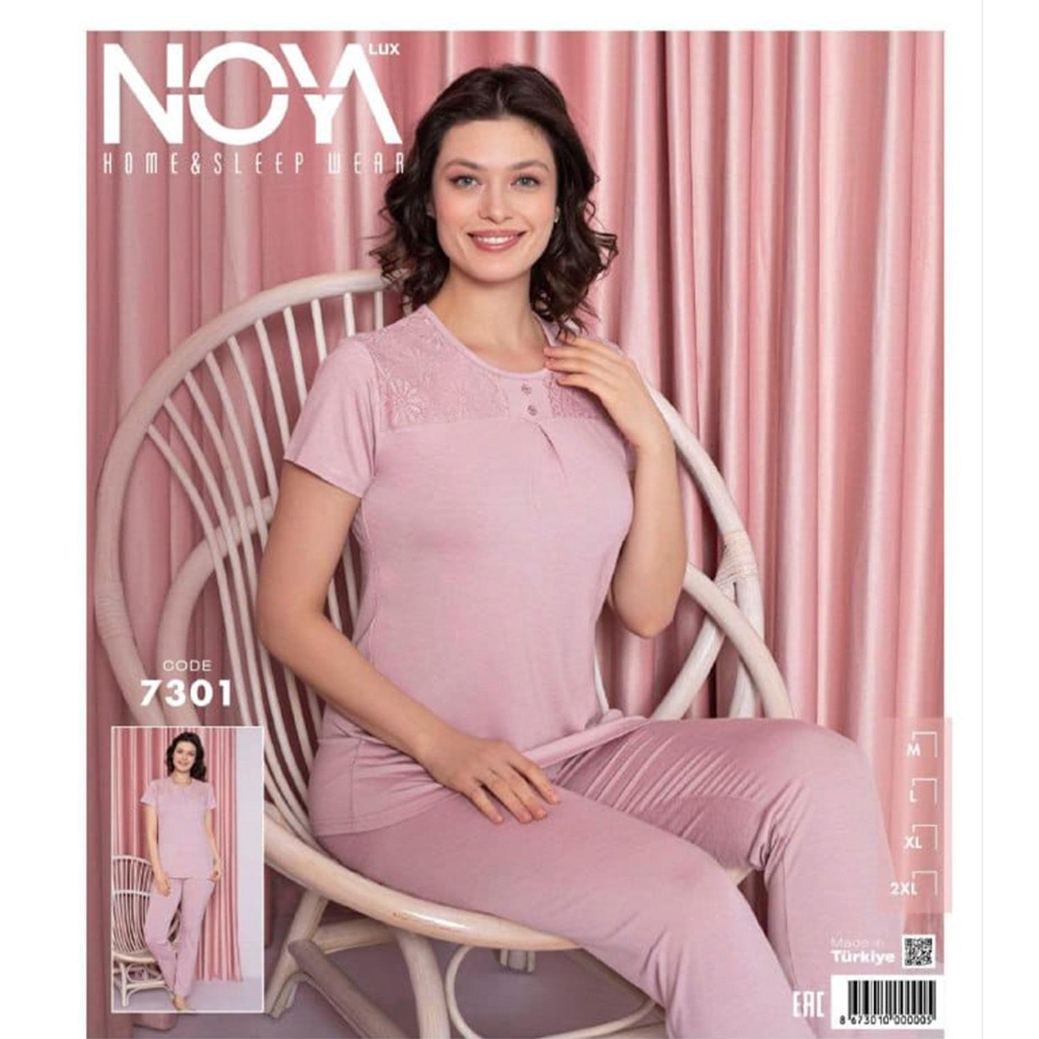 Noya Lux 7301 Bayan Penye Patlı Kısa Kol Pijama Takımı M-2XL