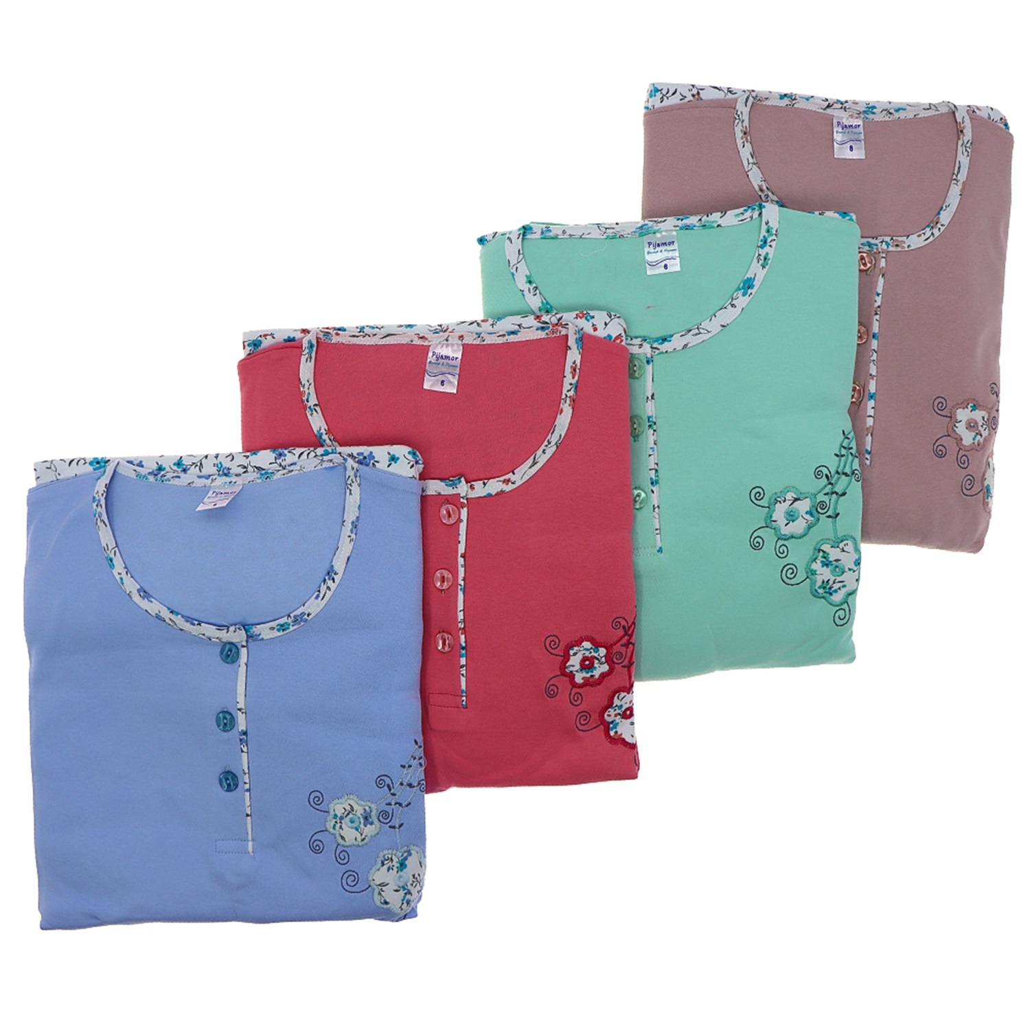 Pijamor 760 Bayan Önü Düğmeli Penye Empirme Düz Battal Patlı interlok Pijama Takımı 6-7-8