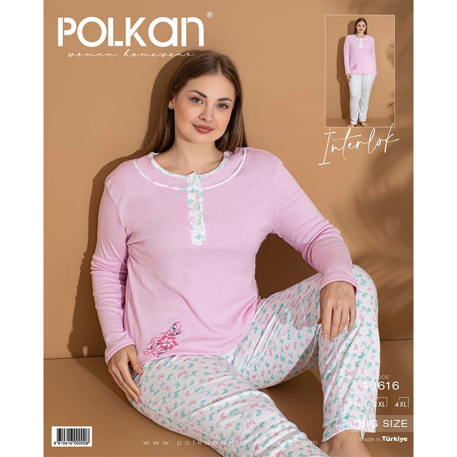 Polkan 10616 Bayan İnterlok Düğmeli Pijama Takımı 2XL-4XL