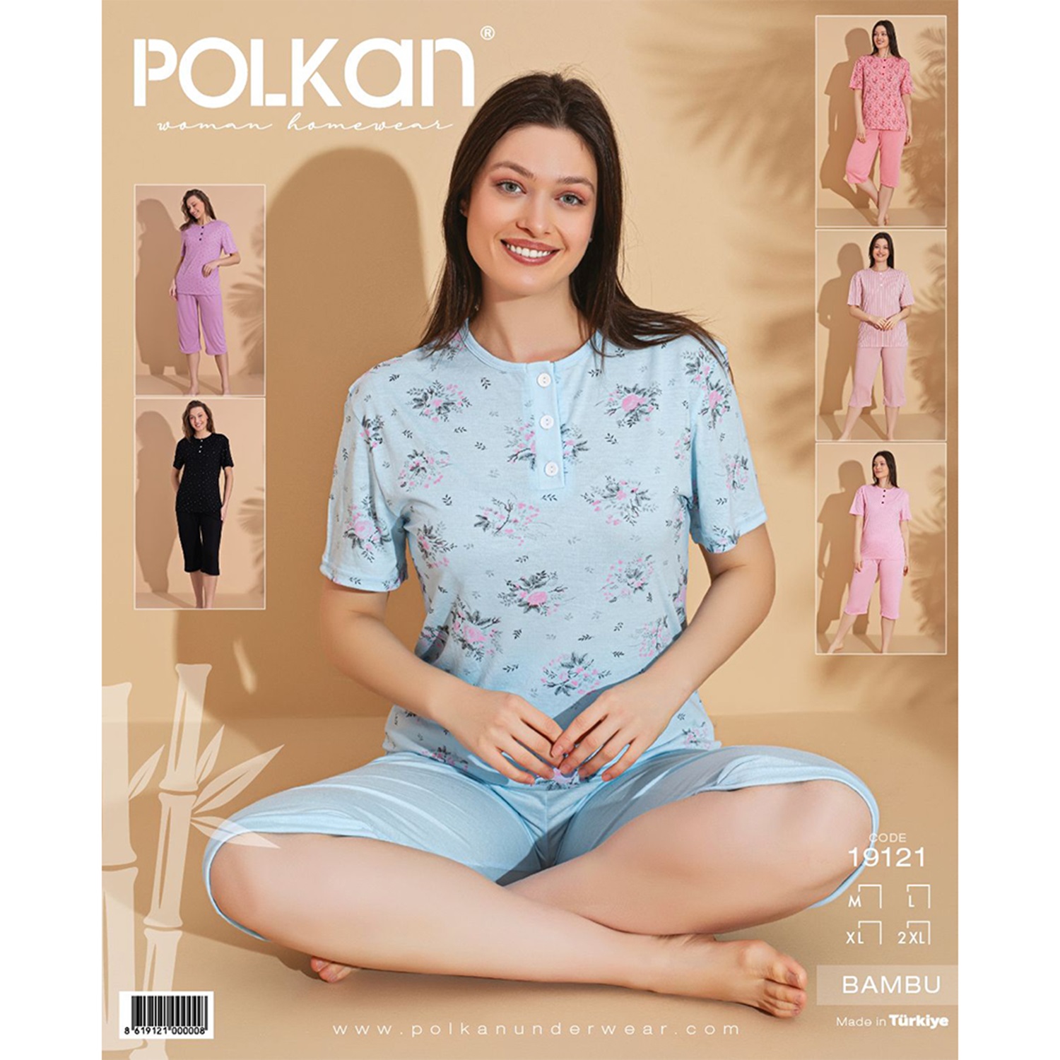 Polkan 19121 Bayan Bambu Kapri Desenli Pijama Takımı M-2XL