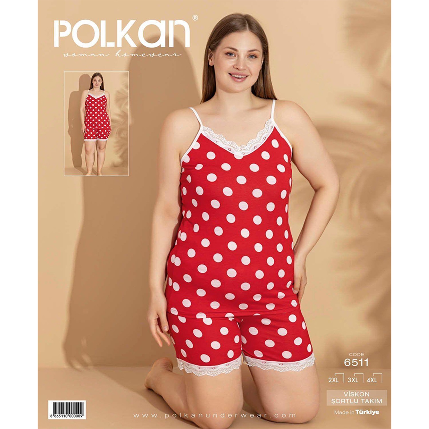 Polkan 6511 Bayan Battai Basklı Viskon Şortlu Pijama Takımı 2XL-4XL