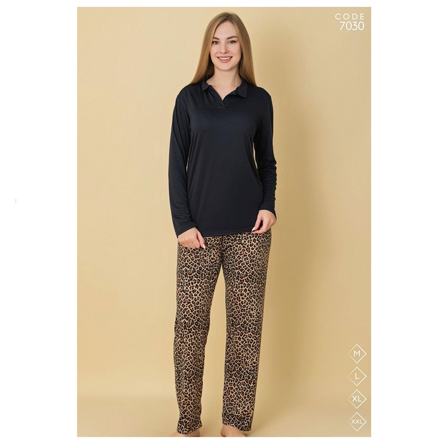 Selina 7030 Bayan Milan Desenli Uzun Kol Pijama Takımı M-2XL