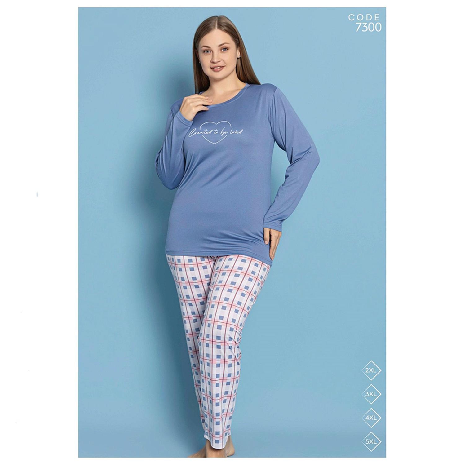 Selina 7300 Bayan Battal Milan Desenli Uzun Kol Pijama Takımı 2XL-5XL