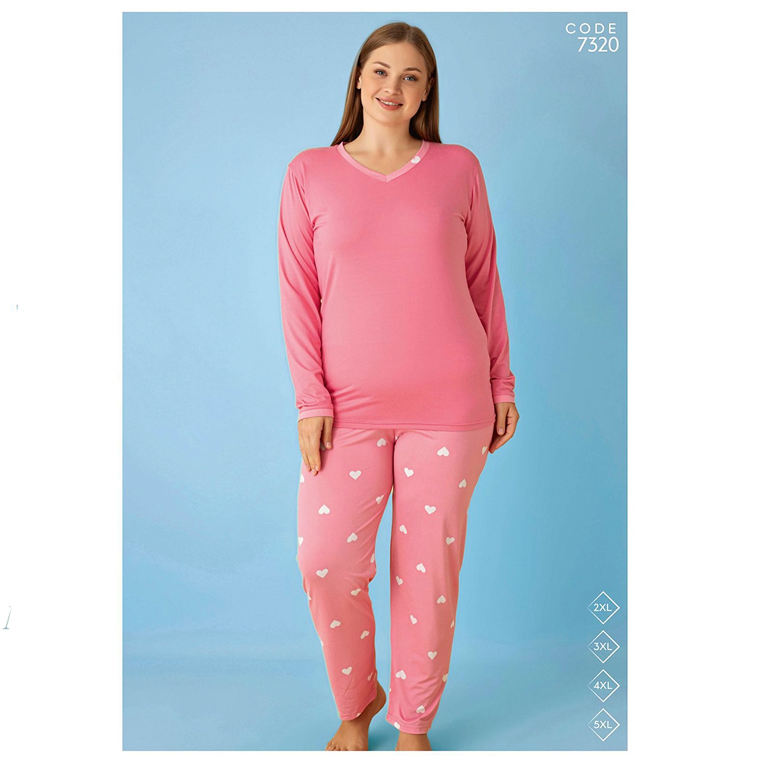 Selina 7320 Bayan Battal Milan Desenli Uzun Kol Pijama Takımı 2XL-5XL