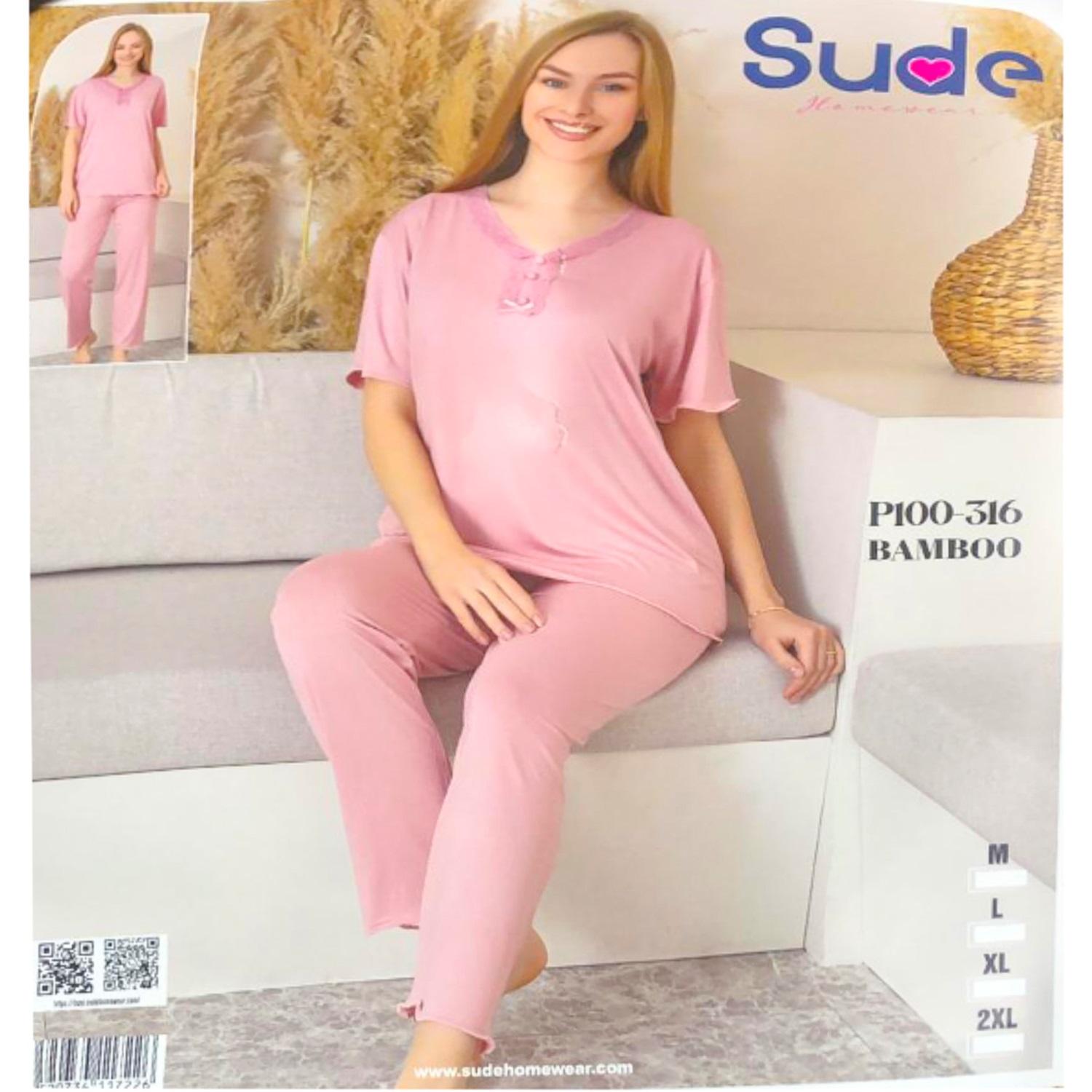 Sude P100-316 Bayan Bambu V Yaka Kısa Kol Pijama Takımı M-2XL - Karışık Renk - M-L-XL-2XL