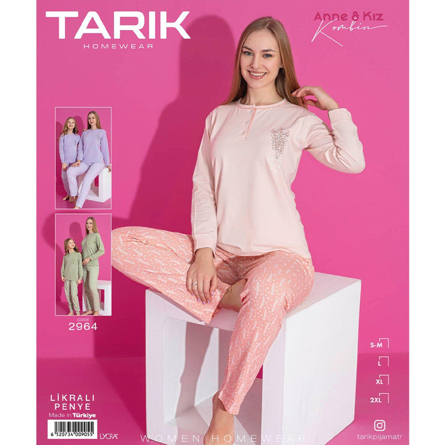 Tarık 2964 Bayan Penye Likralı Uzun Kol Pijama Takımı S-2XL