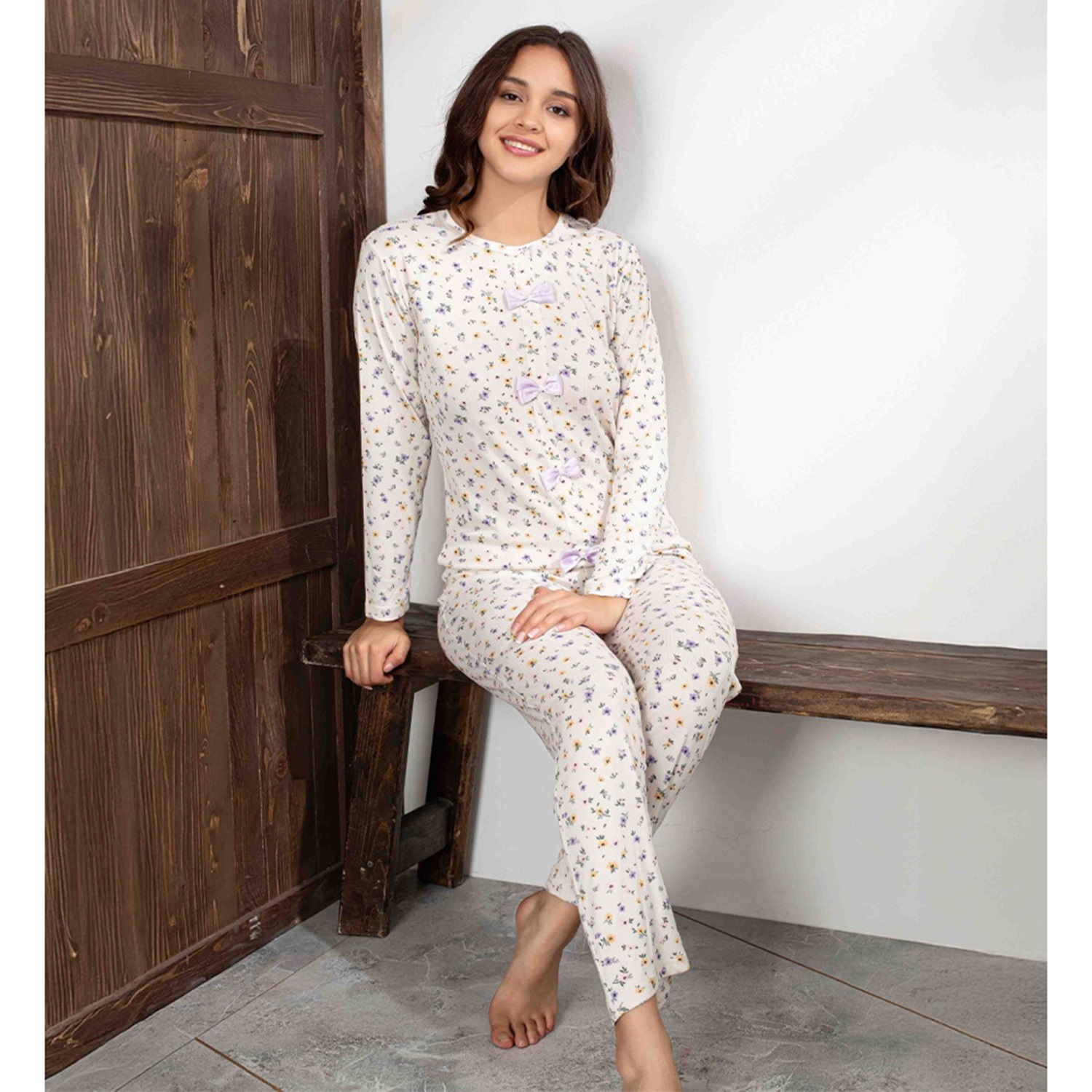 Tarık 3259-4 Bayan Kaşkorse Çiçek Desen Pijama Takımı S-2XL