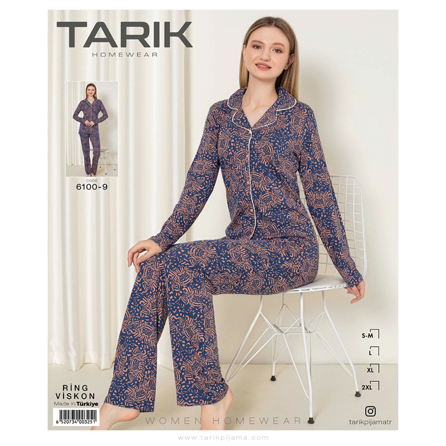 Tarık 6100-9 Bayan Ring Viskon Önden Düğmeli U Kol Pijama Takımı S-2XL