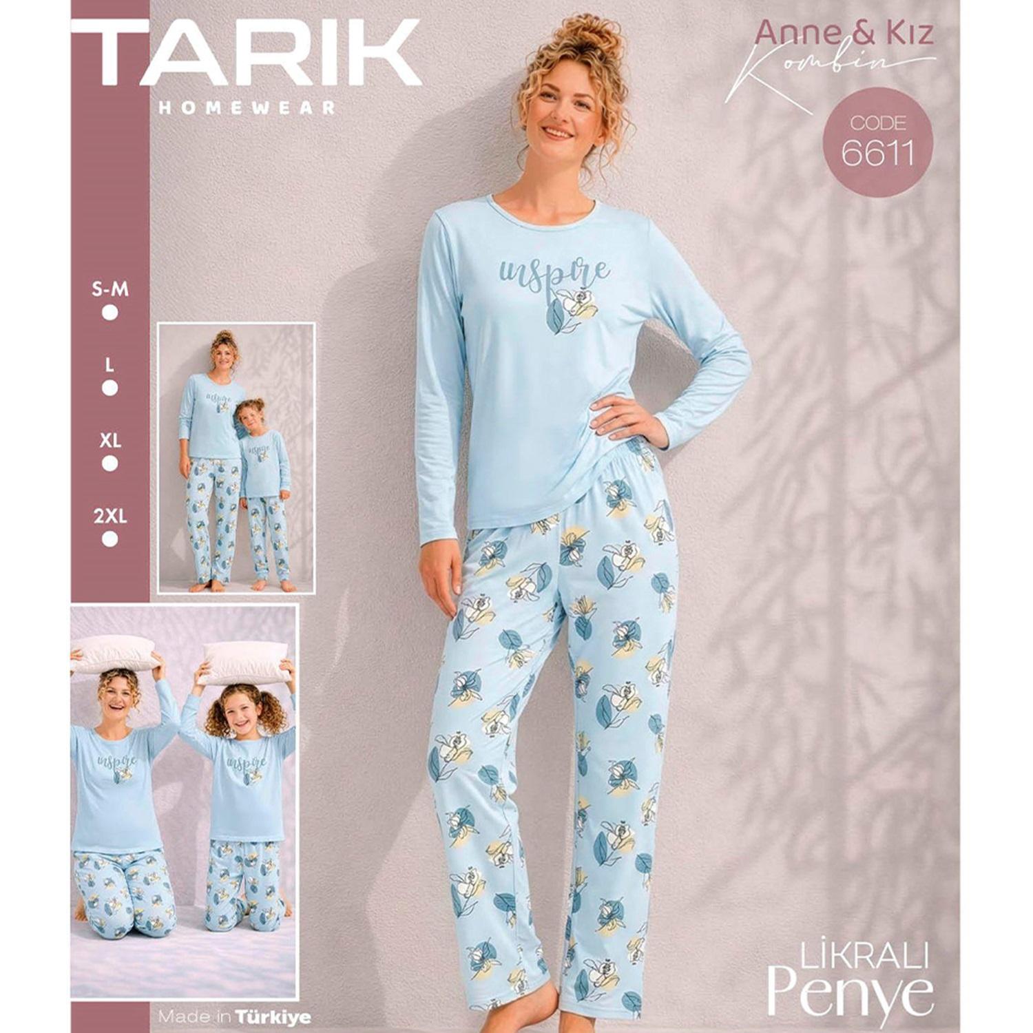 Tarık 6611 Bayan Penye Likralı Çiçek Baskılı Uzun Kol Pijama Takımı S-2XL