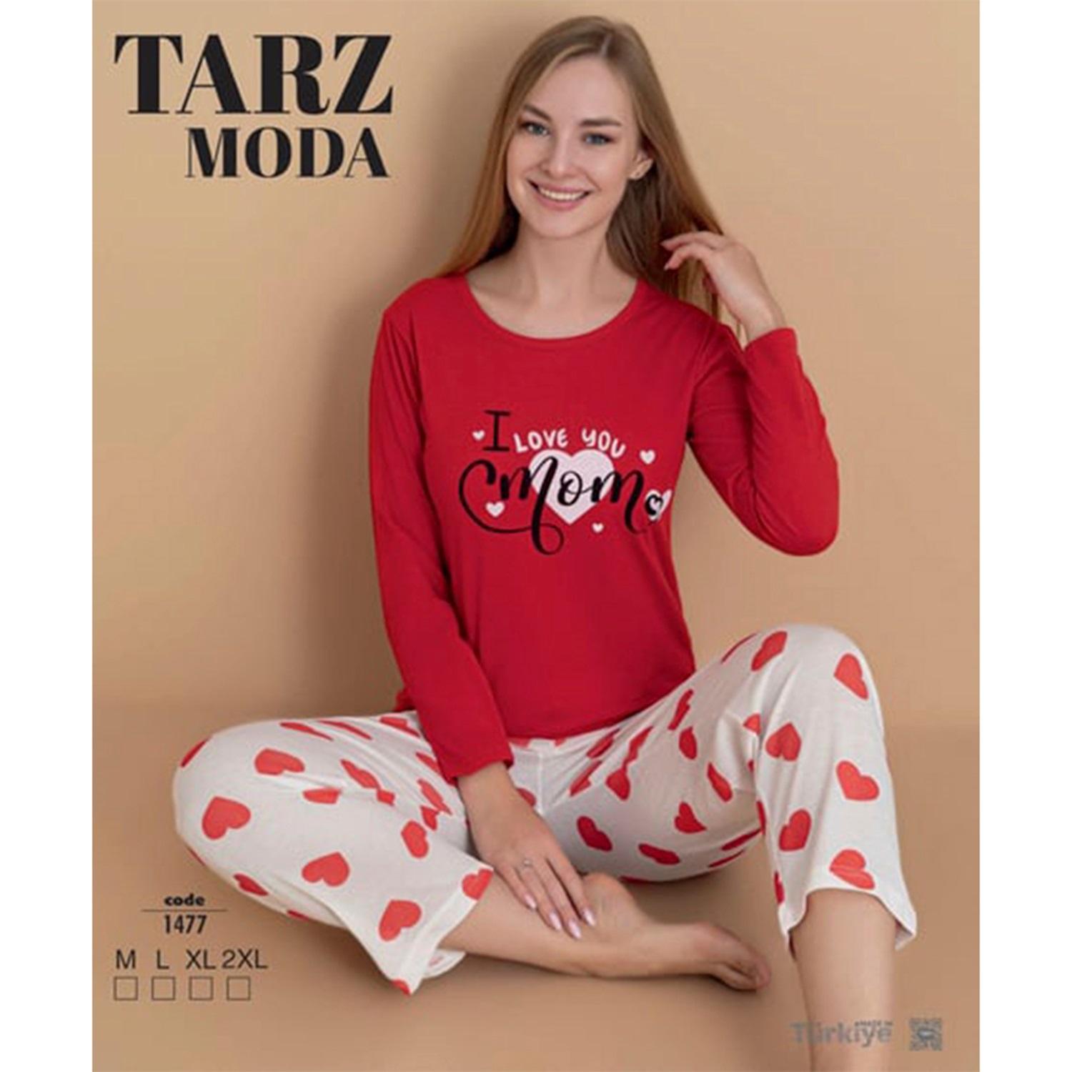 Tarz Moda 1477 Bayan Penye Likralı Baskılı Pijama Takımı M-2XL (4 Lü)