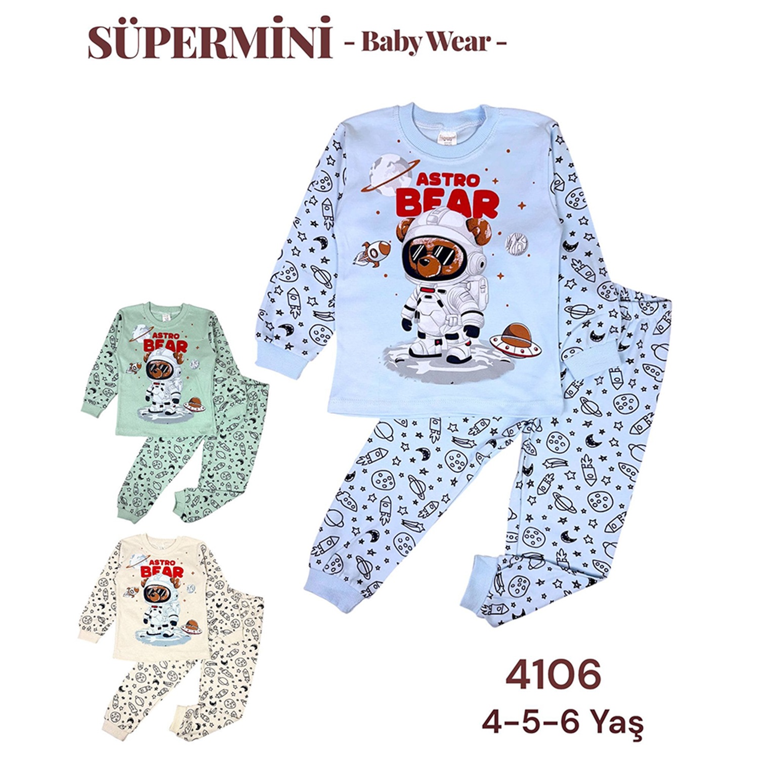 Süpermini 4106 Çocuk Penye Astronot Sevimli Ayıcık Baskılı Takım 4-6 Yaş