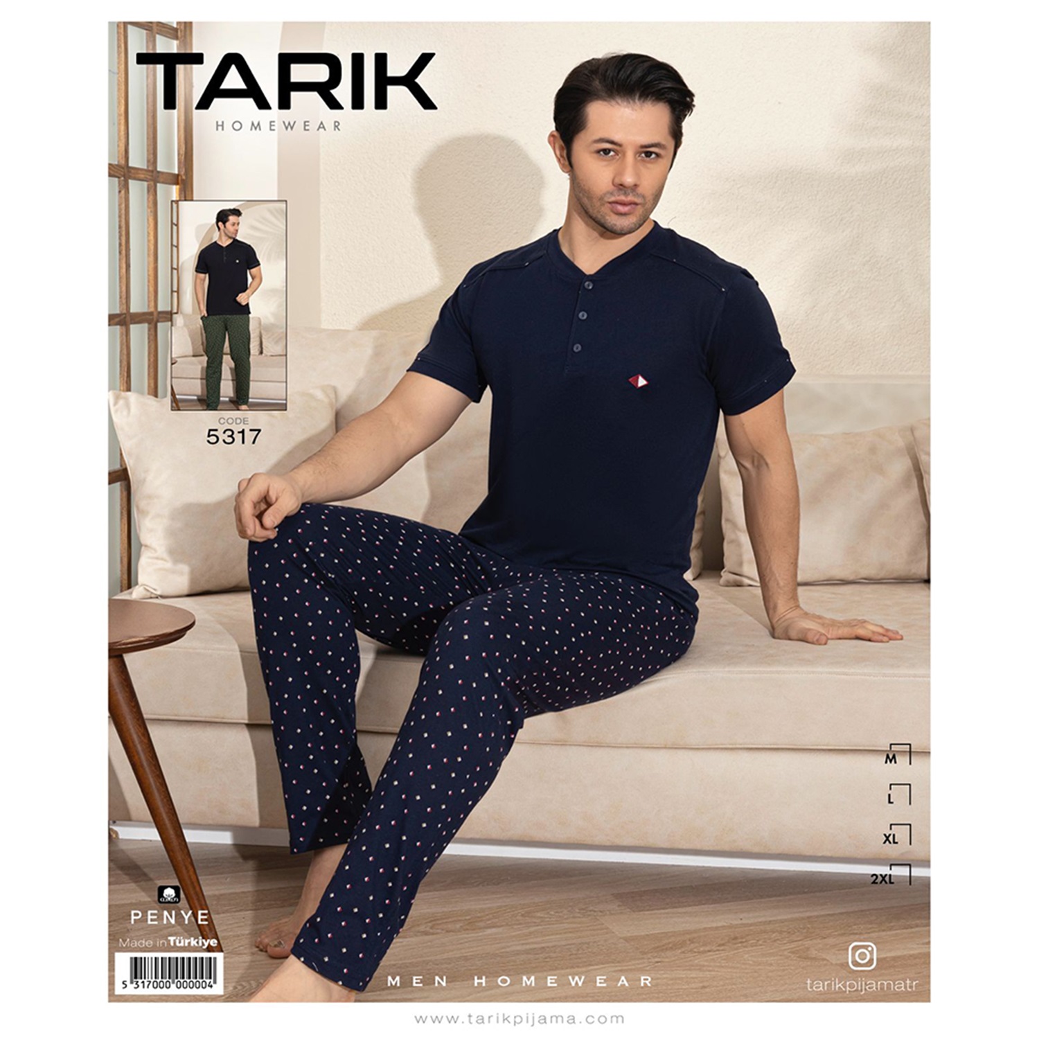 Tarık 5317 Erkek Penye Düğmeli Kısa Kol Pijama Takımı M-2XL