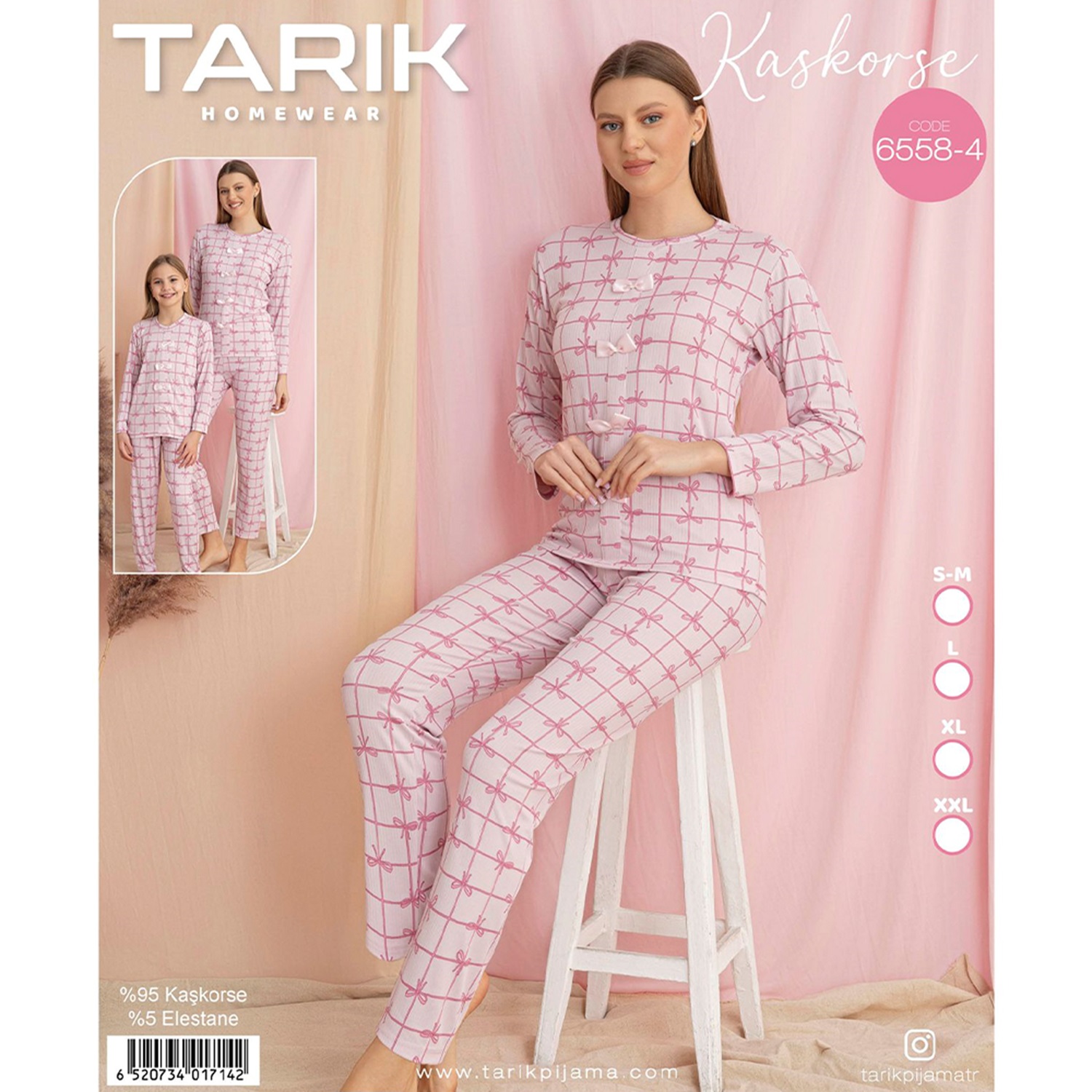 Tarık 6558-4 Bayan Kaşkorse Fiyonk Baskılı Uzun Kol Pijama Takımı SM-2XL