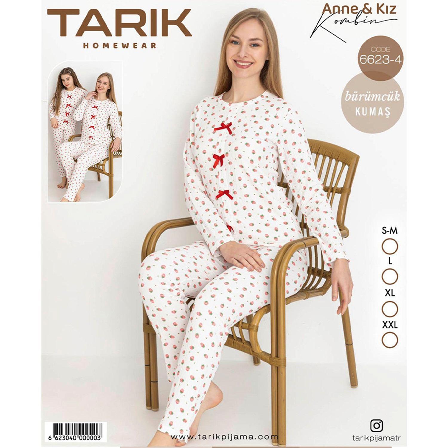 Tarık 6623-4 Bayan Bürümcük Kumaş Çilek Baskılı Uzun Kol Pijama Takımı SM-2XL