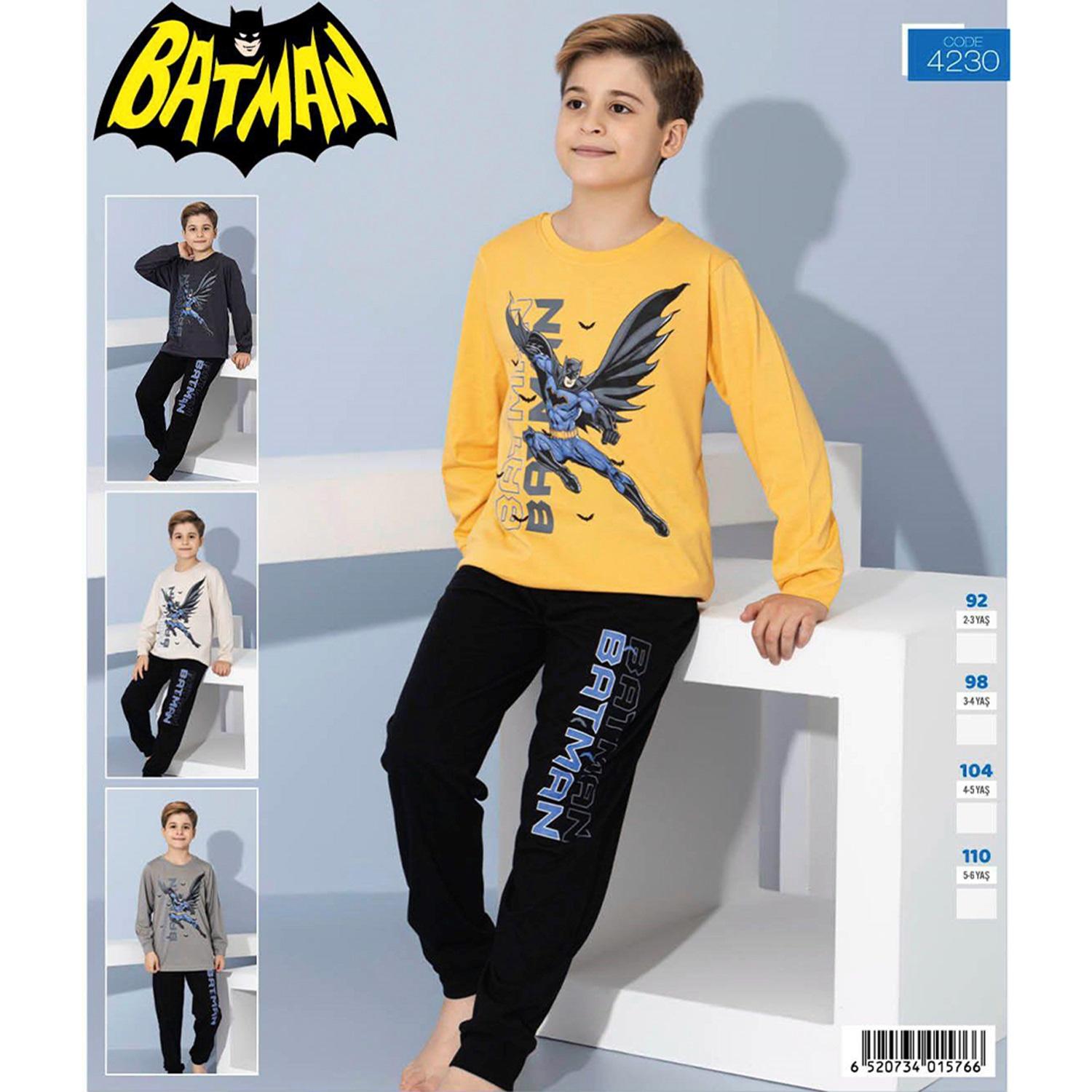 Batman 4230 Erkek Çocuk Penye Likralı Batman Baskılı Pijama Takımı 3-6 Yaş