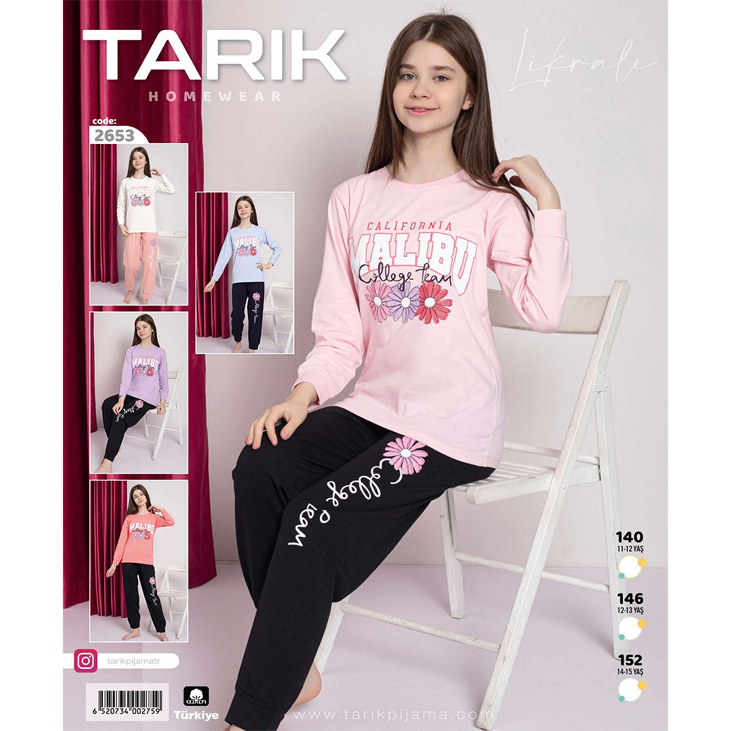 Tarık 2653 Kız Çocuk Malibu Bas U Kol Penye Gez Pijama Takımı 11-15 Yaş