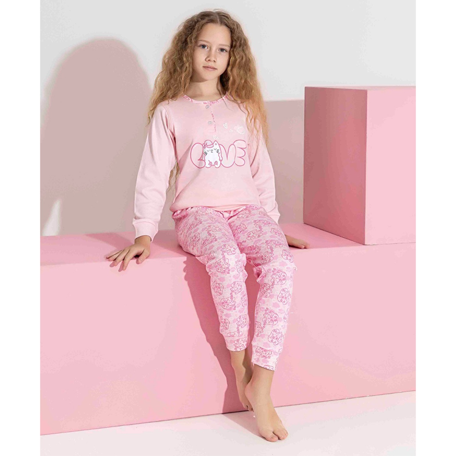 Tarık 3189 Kız Çocuk Garson İnterlok Sevimli Kedi Love Baskılı Pijama Takımı 7-11 Yaş