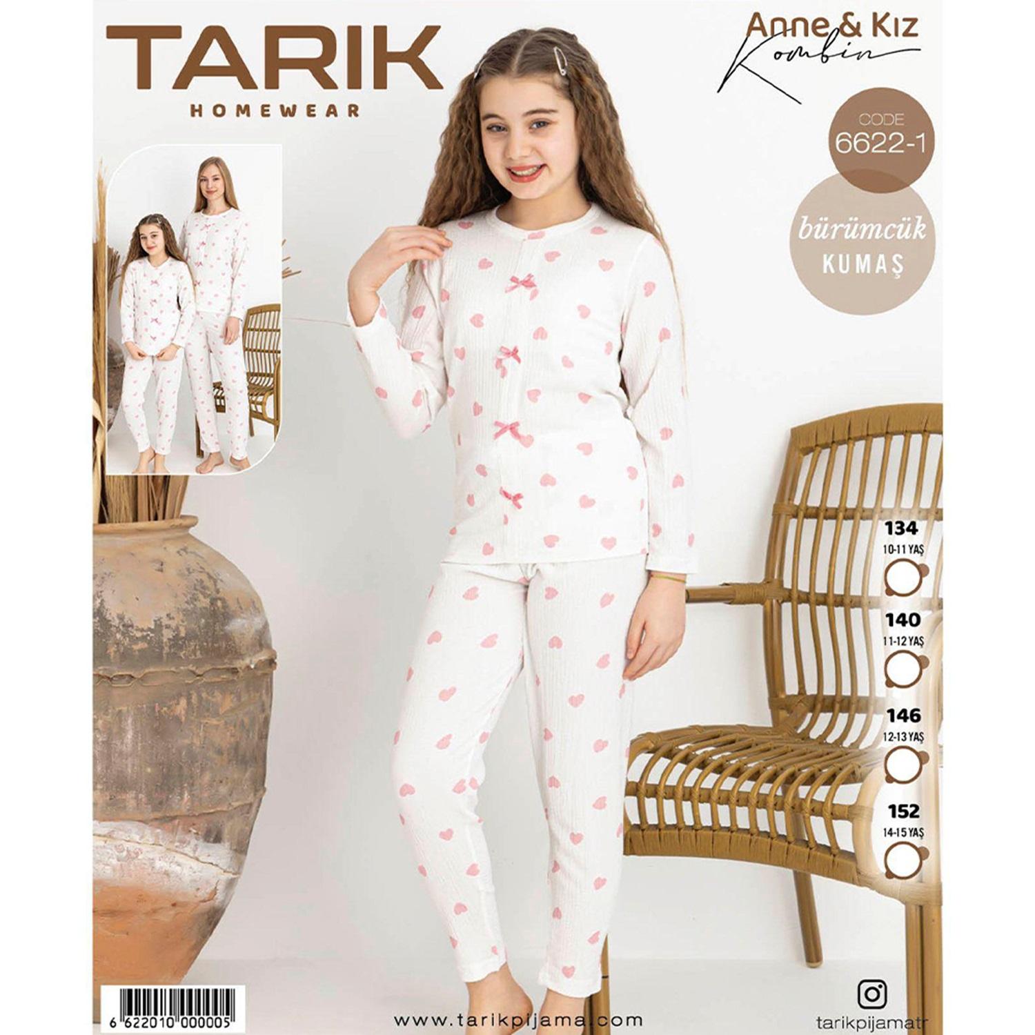 Tarık 6622-1 Kız Çocuk Bürümcük Kumaş Kalp Baskılı Pijama Takımı 11-15 Yaş