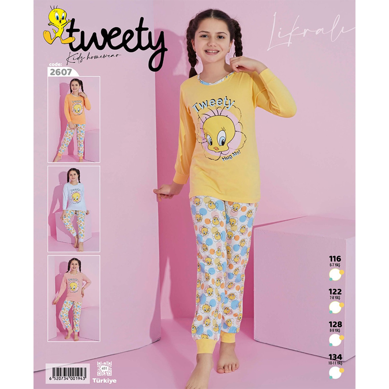 Tweety 2607 Kız Çocuk Tweety Bas U Kol Gar Penye Pijama Takımı 6-11 Yaş