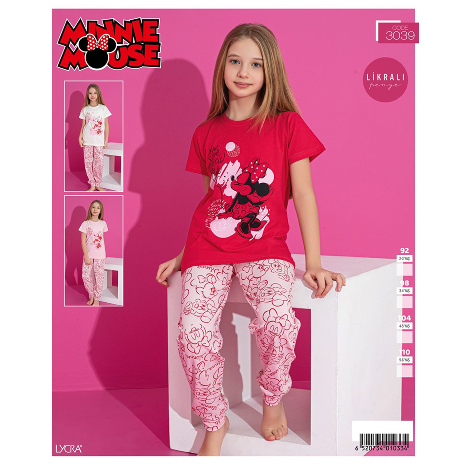 Minnie Mouse 3039 Kız Çocuk Penye Kısa kol Minnie Mouse Bas Pijama Takımı 2-5 Yaş